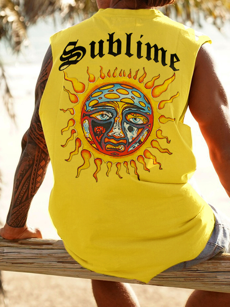 Vibrant Sun Graphic Tank Top For Summer Beach Vibes