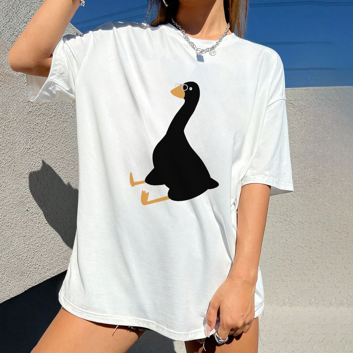'Silly Goose', A Casual Loose-Fitting T-Shirt With The Slogan And A Cartoon Goose.
