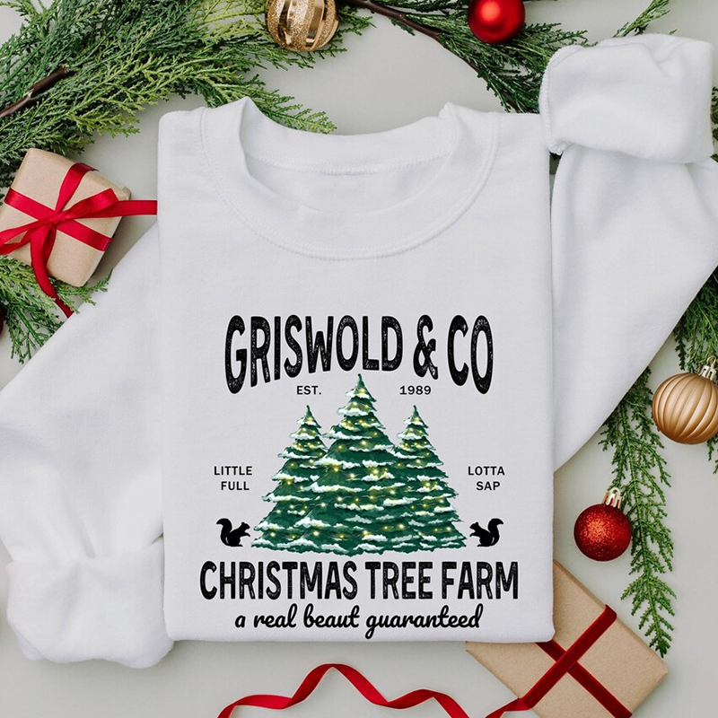 Women's Griswold And Co Christmas Tree Farm A Real Beaut Guaranteed Printed Round Neck Long Sleeve Sweatshirts