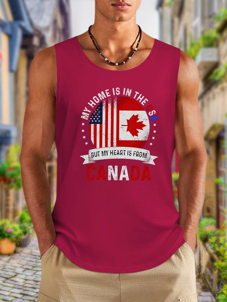 Men'S My Home Is In The Usa But My Heart Is From Canada Round Neck Cotton Vest