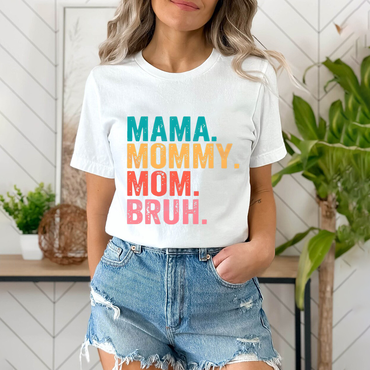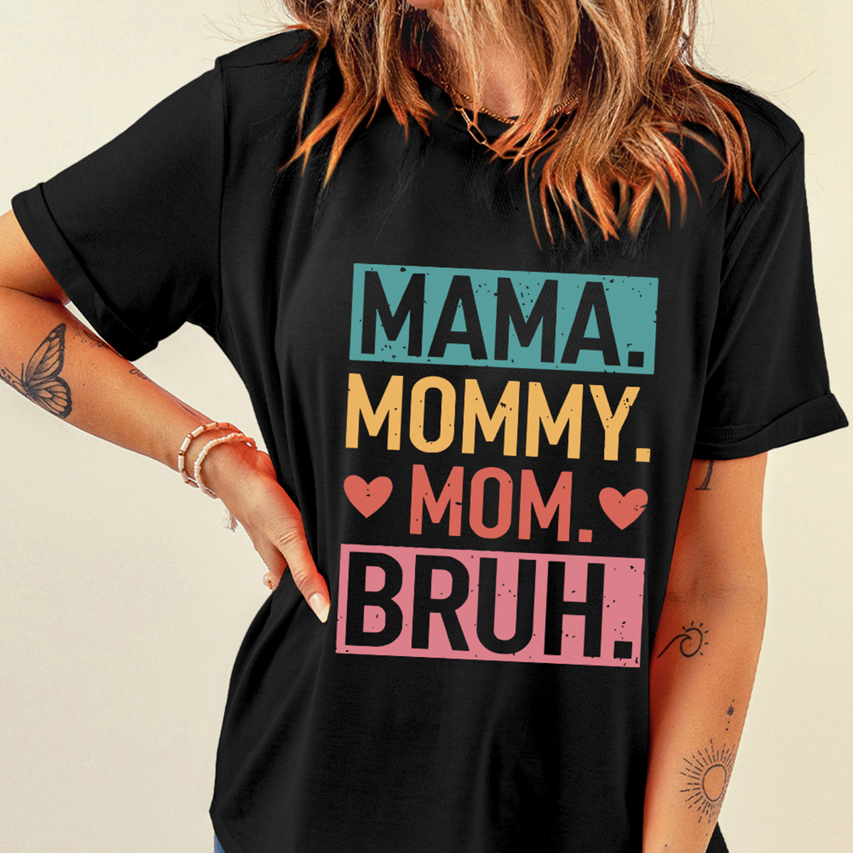 Mama Mom Mommy Bruh Print Round Neck Short Sleeve T-Shirt