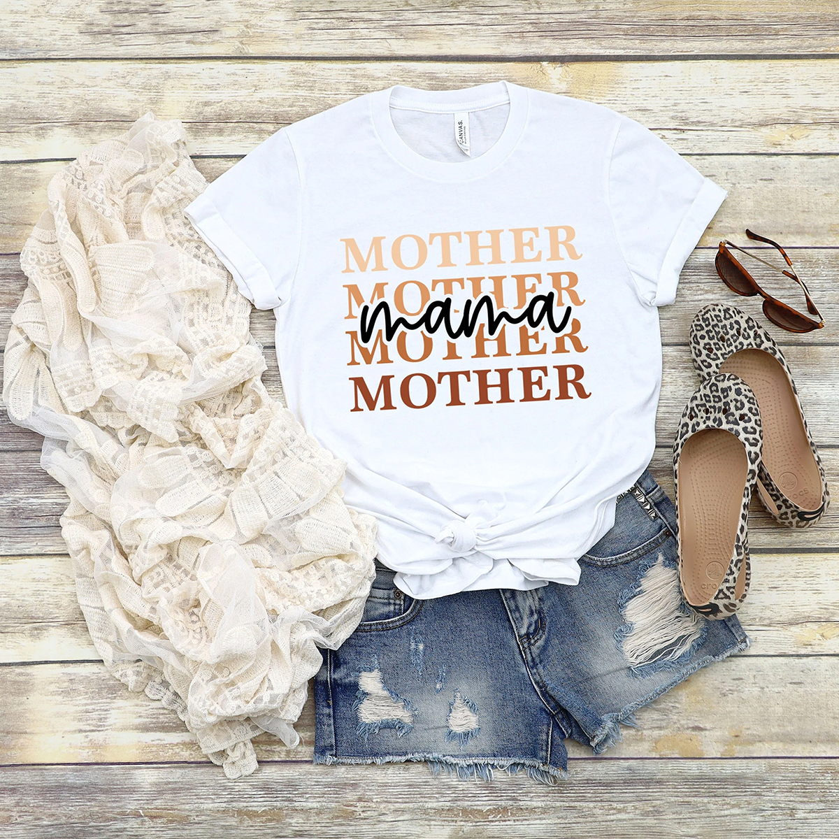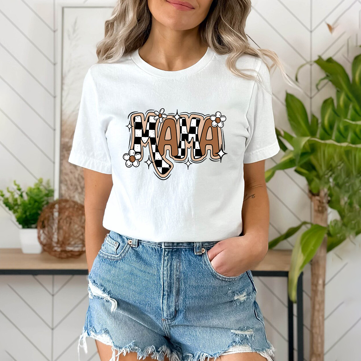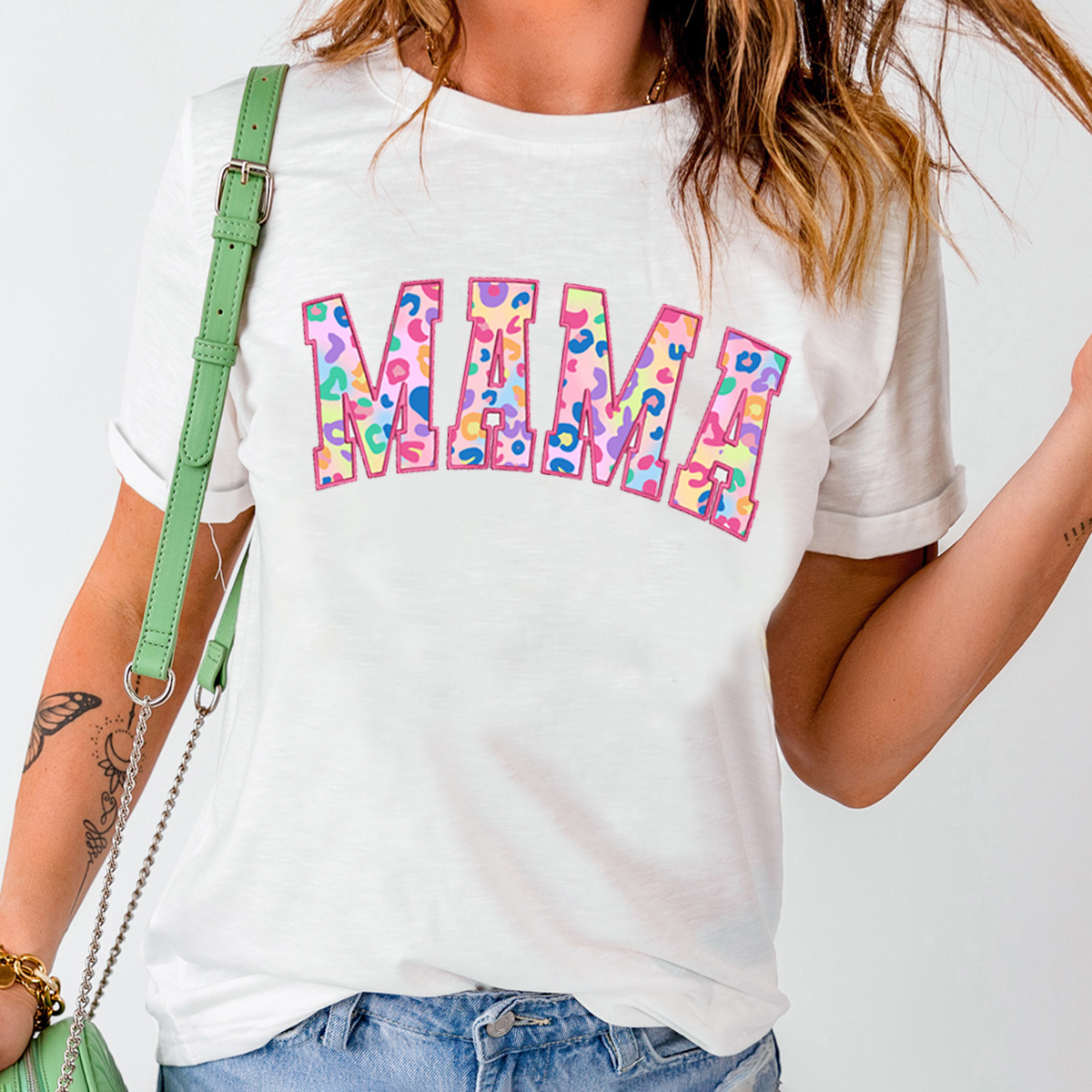 "Mama" Filled With Colorful Patterns, Casual T-Shirts, Mom Wear.