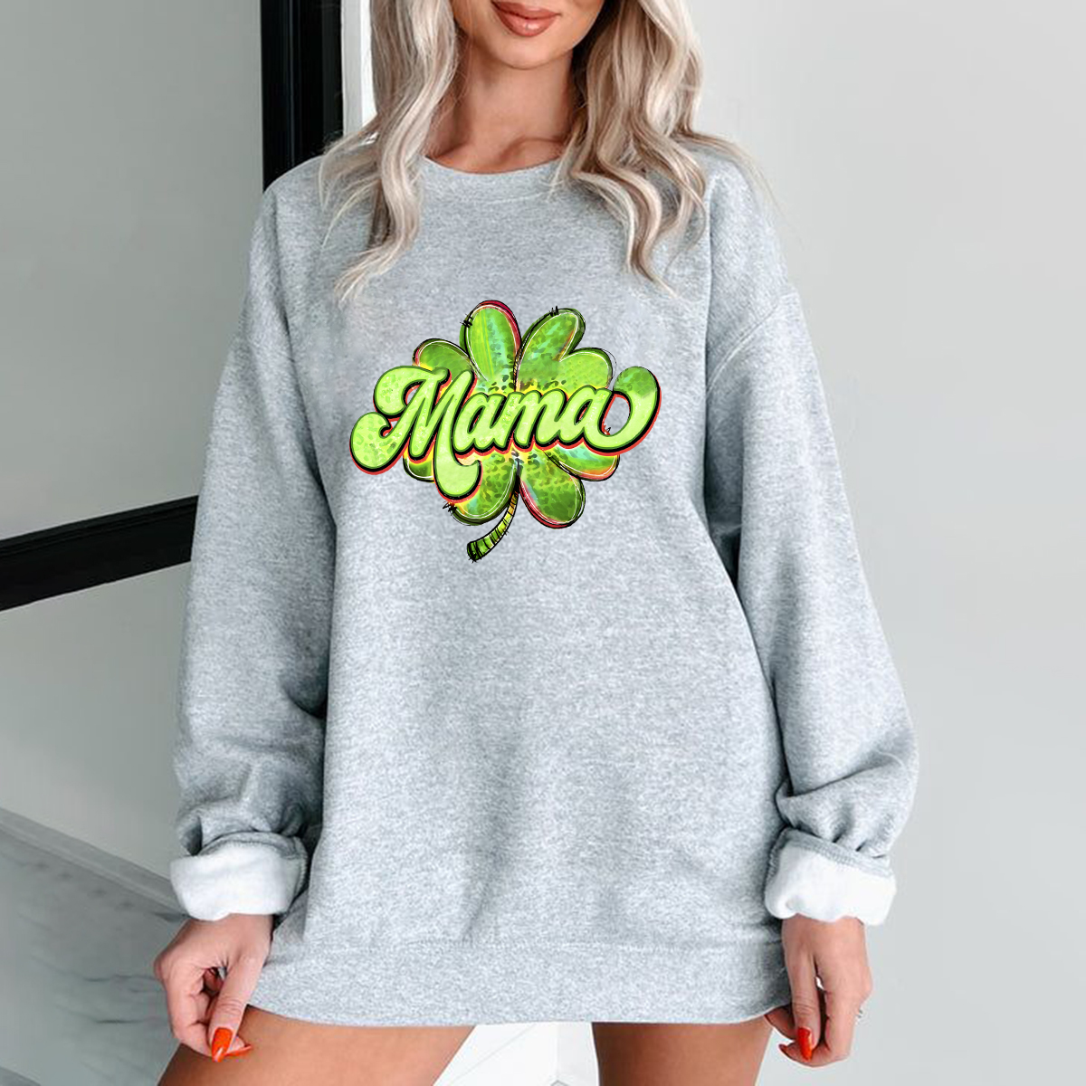 "Mama" Green Clover Illustration, Crew Neck Sweatshirt