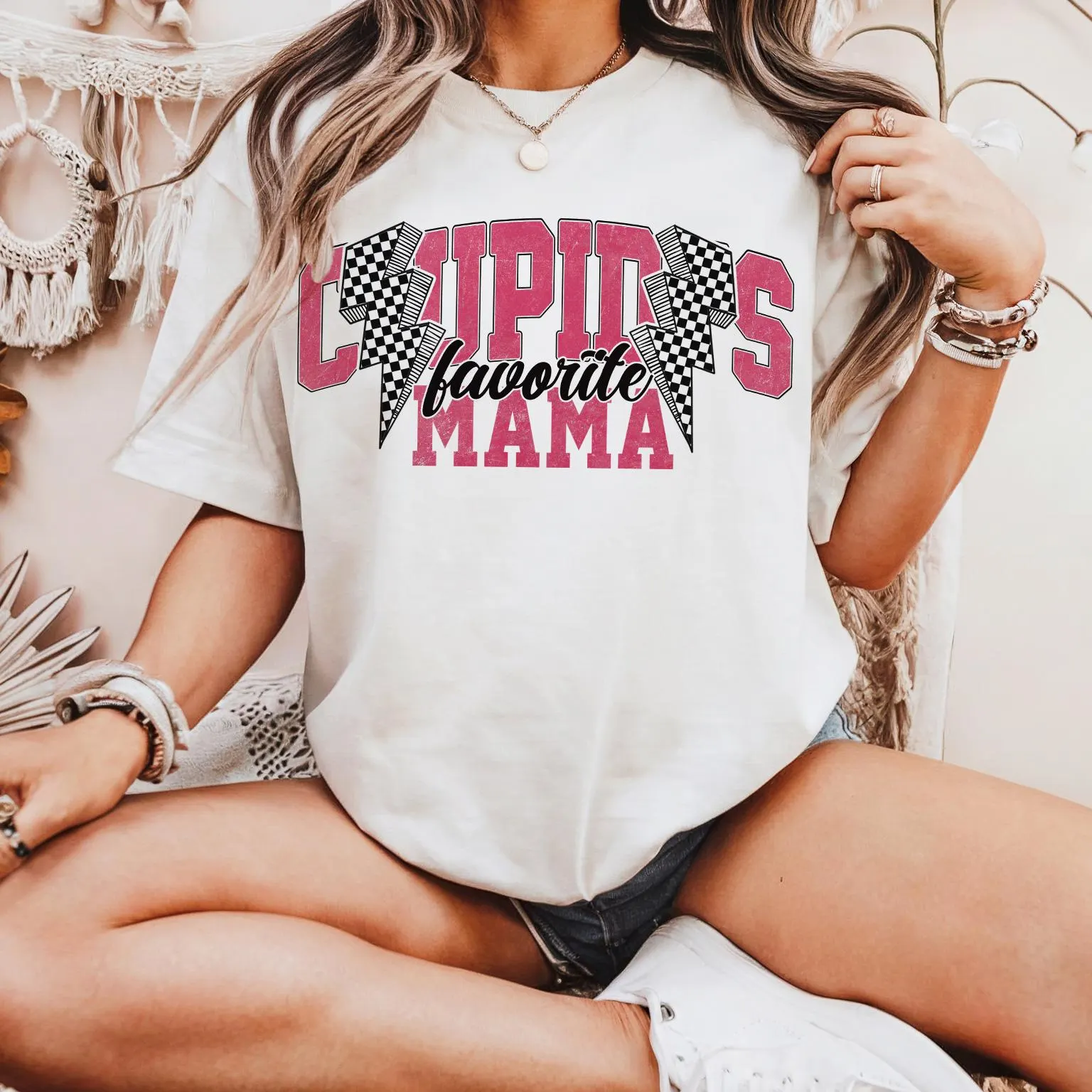 Cupids Favorite Mama Print Round Neck Short Sleeve T-Shirt
