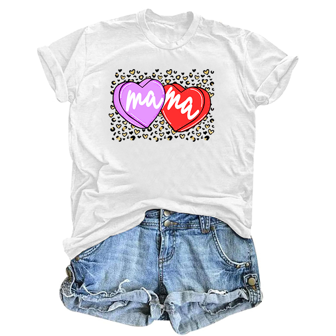 Mama's Day Print Round Neck Short Sleeve T-Shirt