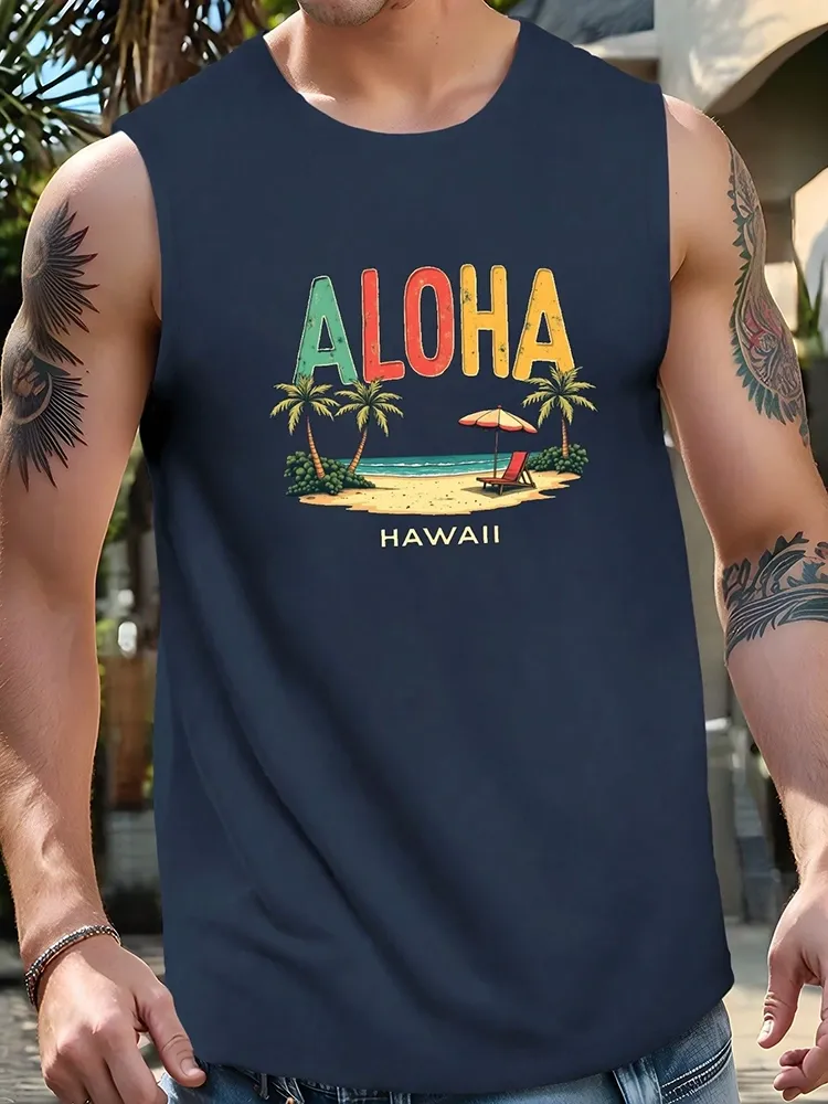 ALOHA HAWAII Tropical Design Print Men'S Tank Top, Casual Sleeveless Athletic Tank Top