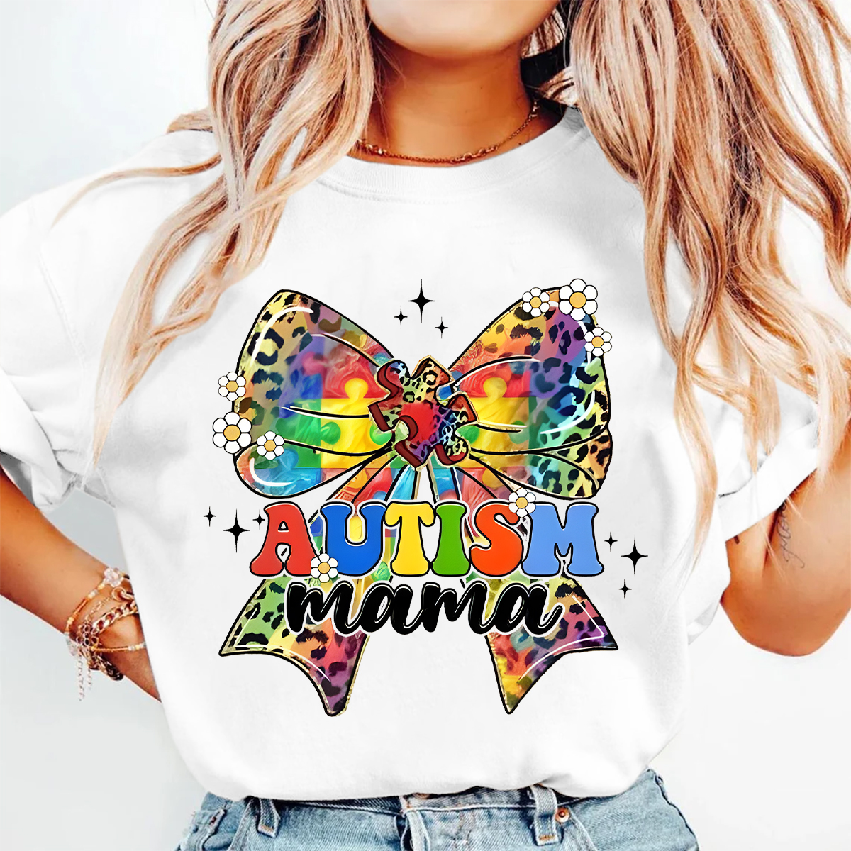 Autism Mama Print Round Neck Short Sleeve T-Shirt