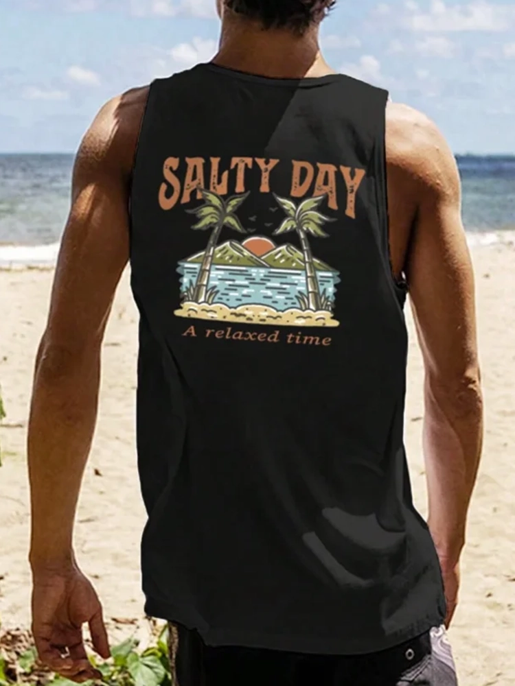 Beach Print Loose High Quality Tank Top
