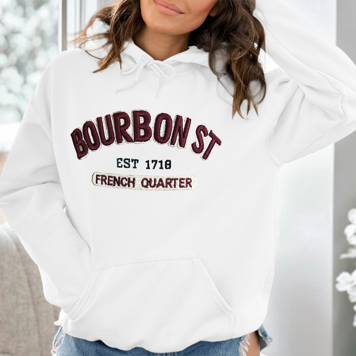 Bourbon Street Est 1718 French Quarter Print Long Sleeved Hoodie