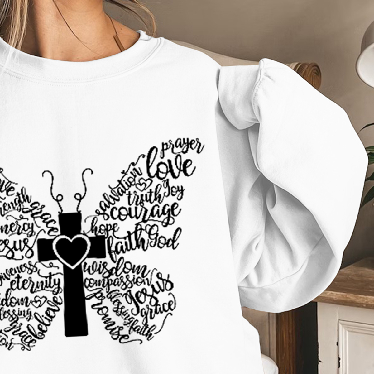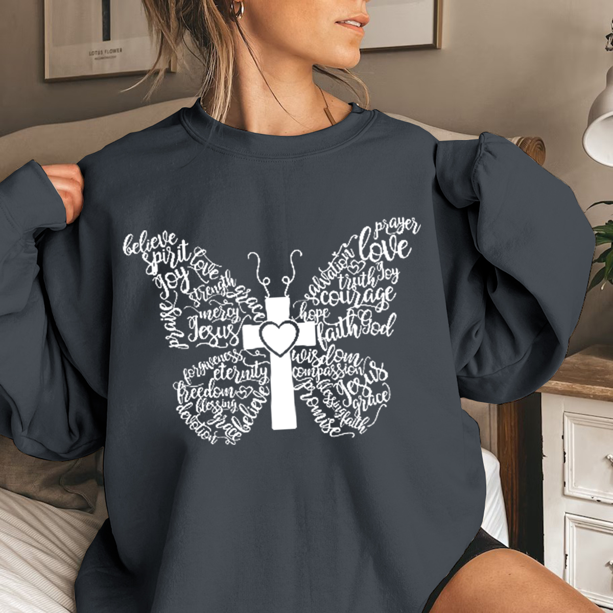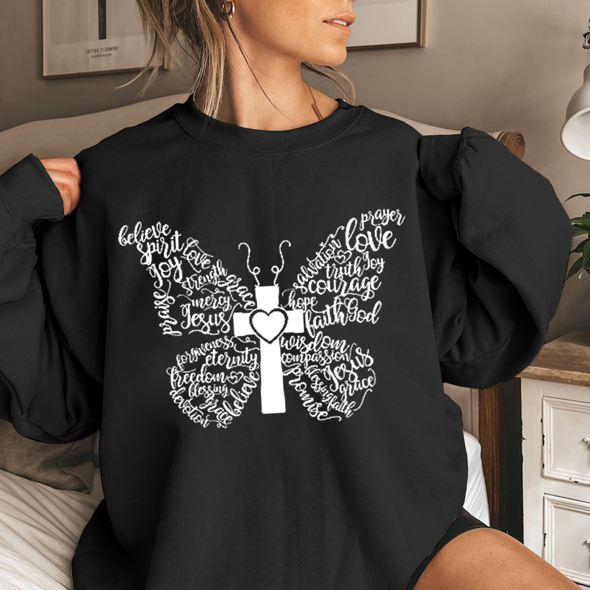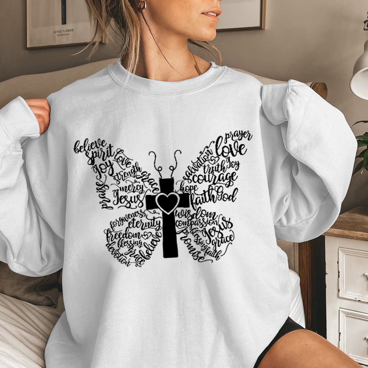 Butterfly Cross Sweatshirt, Butterfly Lover, Christian Sweatshirt, Bible Sweatshirt Valentine Gift for Her, Gift for her, Jesus Sweatshirt Faith Sweatshirt for Women