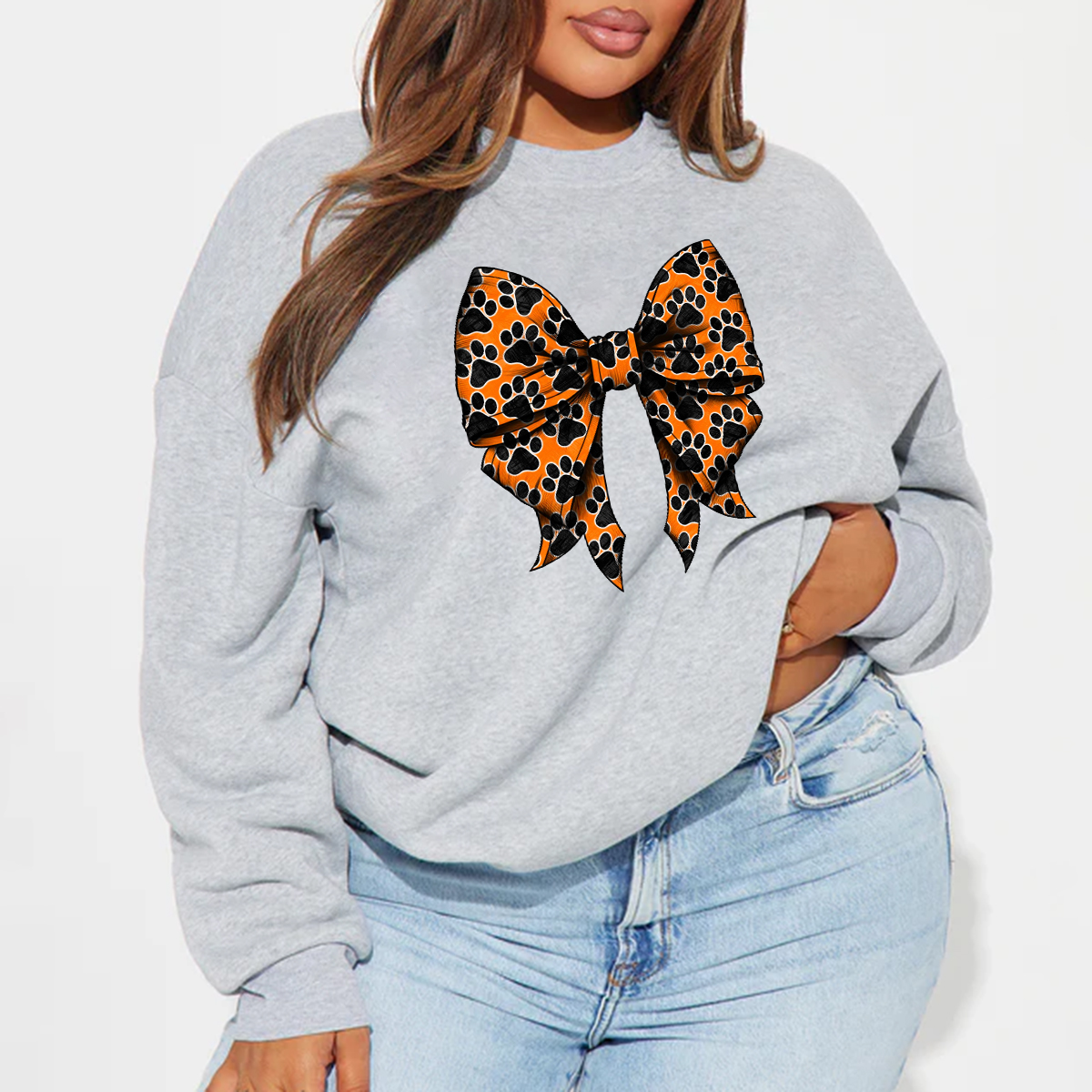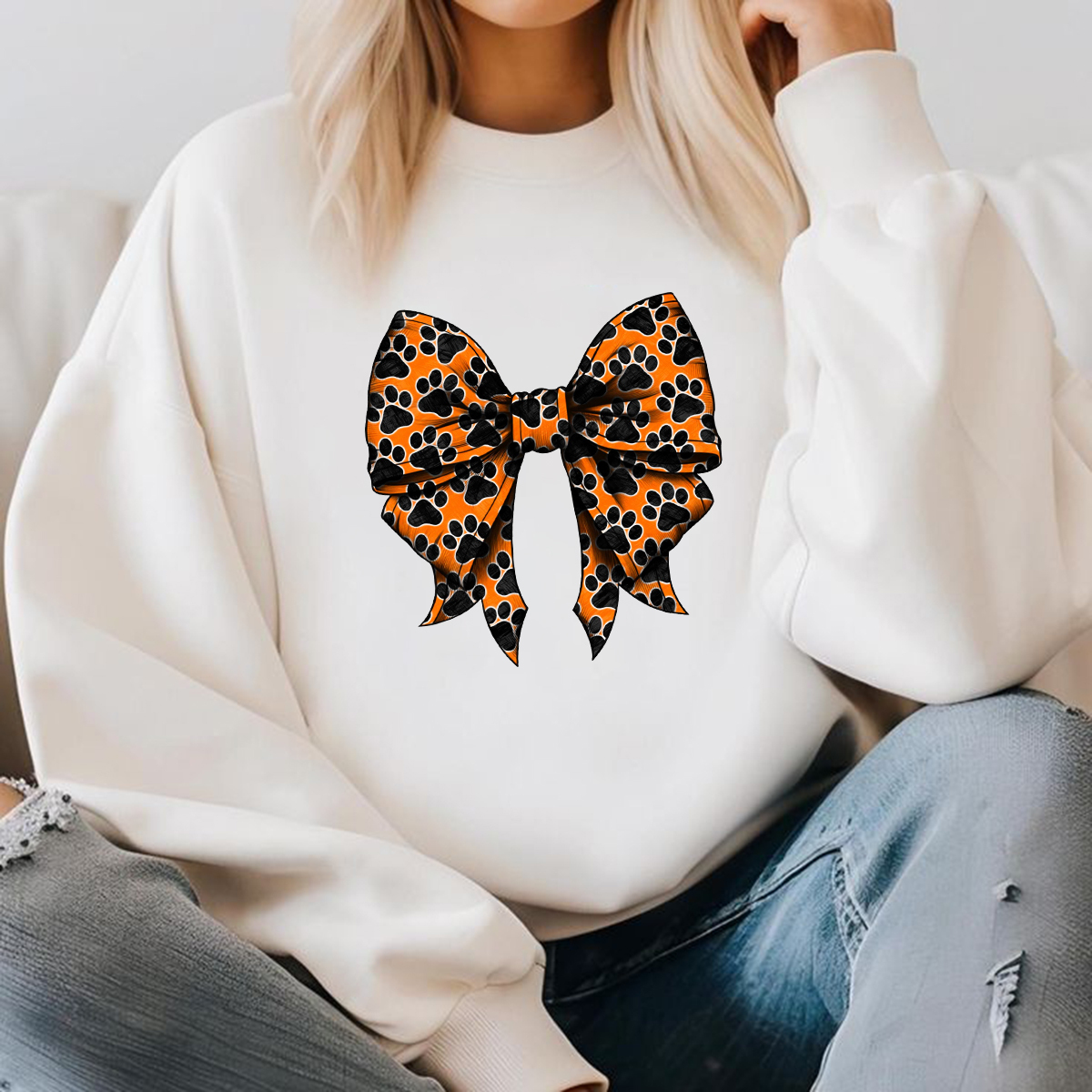 Cartoon Paw Print Bow Pattern, Sweatshirt, Couple Sweatshirt