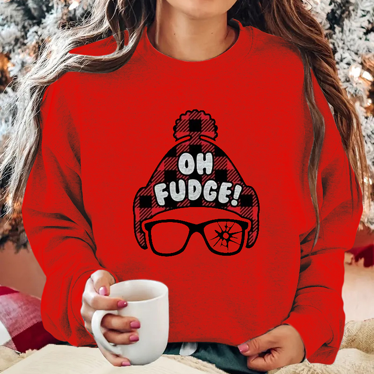 Christmas Figure & Letter Print Pullover Sweatshirt - Ultra-Soft and Cozy Casual Design, Long Sleeve for Added Warmth, Classic Crew Neck Style, Perfect for Fall and Winter Seasons - Designed Exclusive