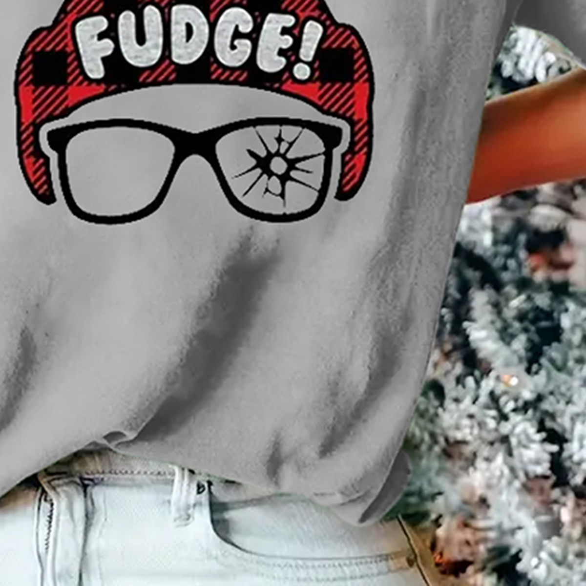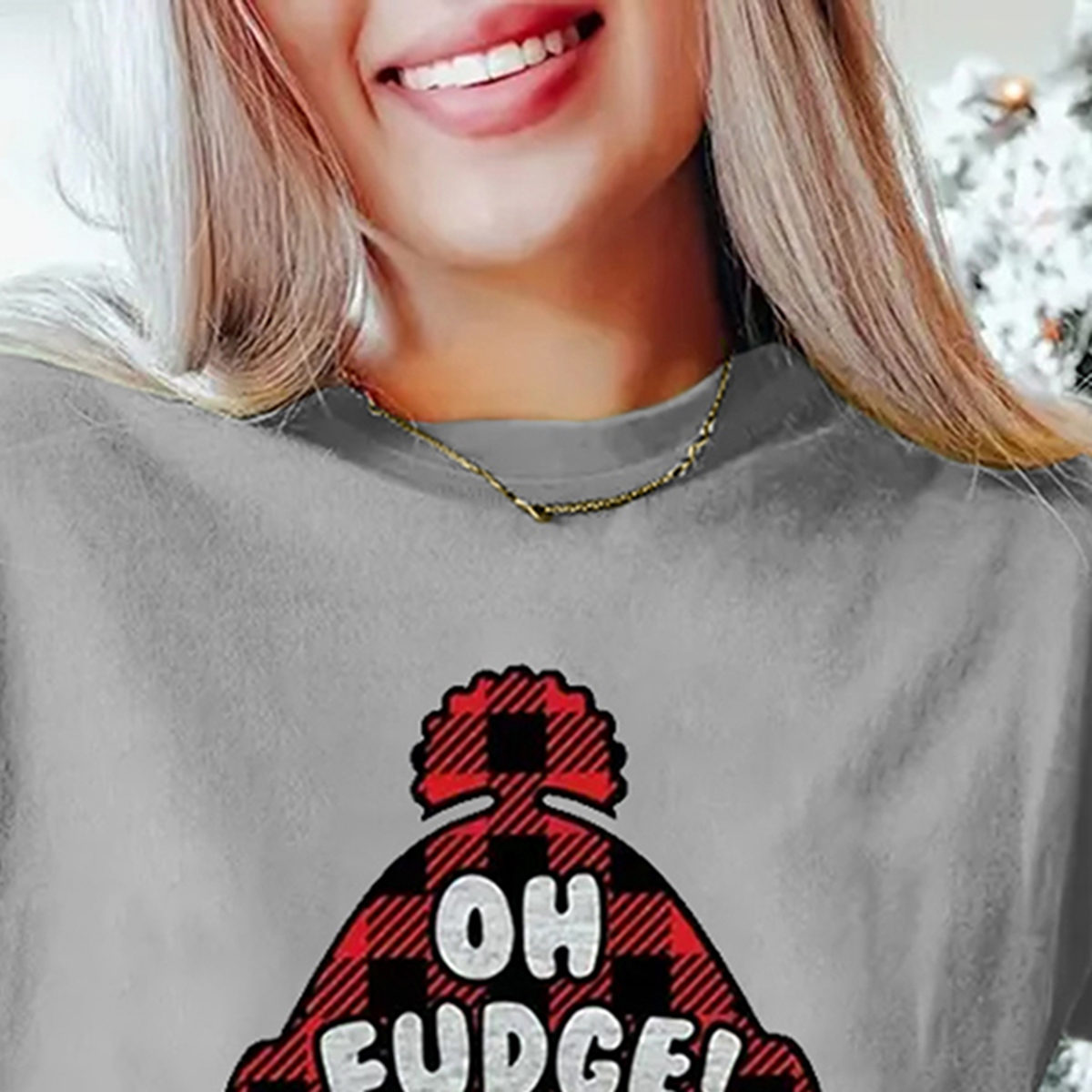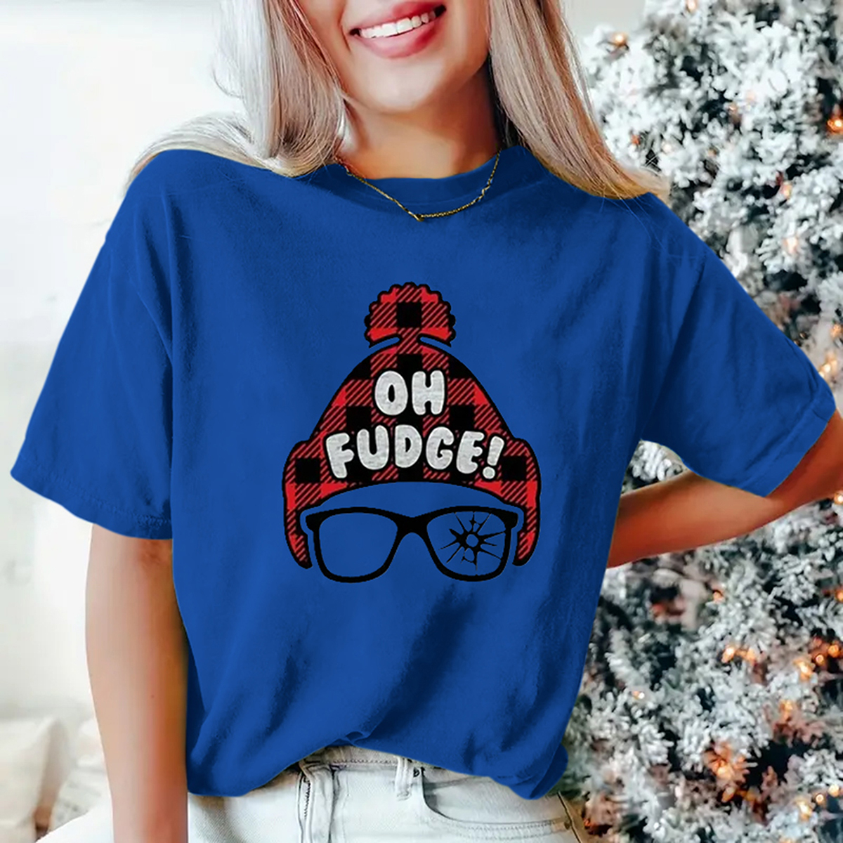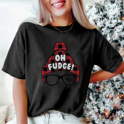 Christmas Figure & Letter Print tshirt - Ultra-Soft and Cozy Casual Design, Short Sleeve for Added Warmth, Classic Crew Neck Style, All Seasons - Designed Exclusive