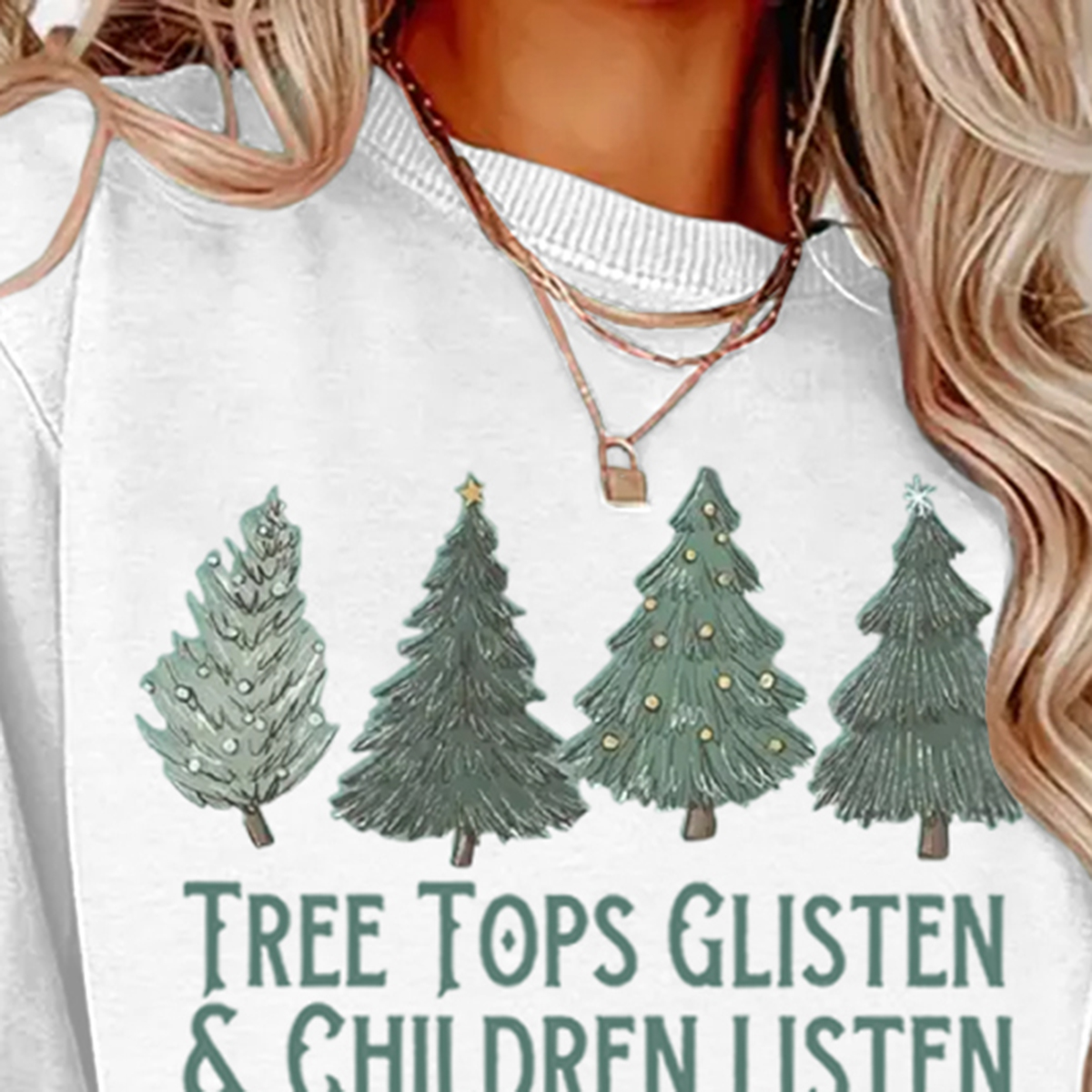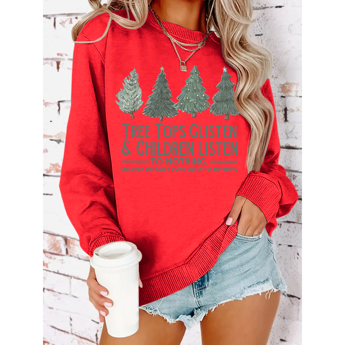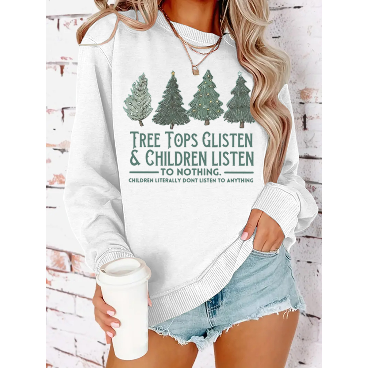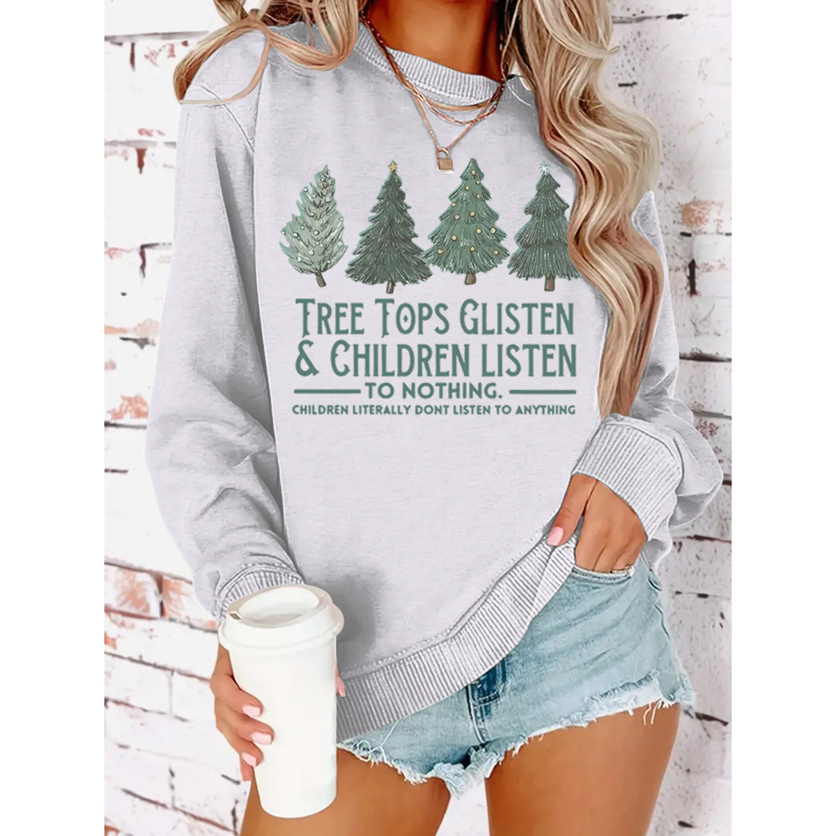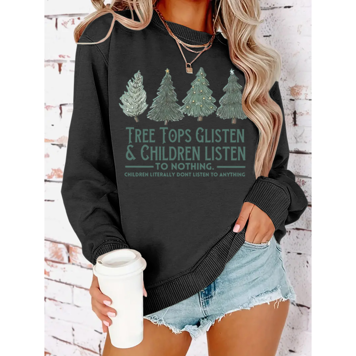 Christmas Tree & Letter Print Loose Sweatshirt, Casual Long Sleeve Crew Neck Sweatshirt, Women's Clothing