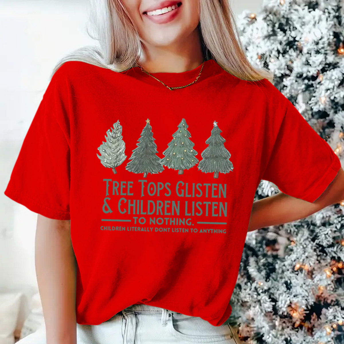 Christmas Tree & Letter Print Loose tshirt, Casual Short Sleeve Crew Neck tshirt, Women's Clothing