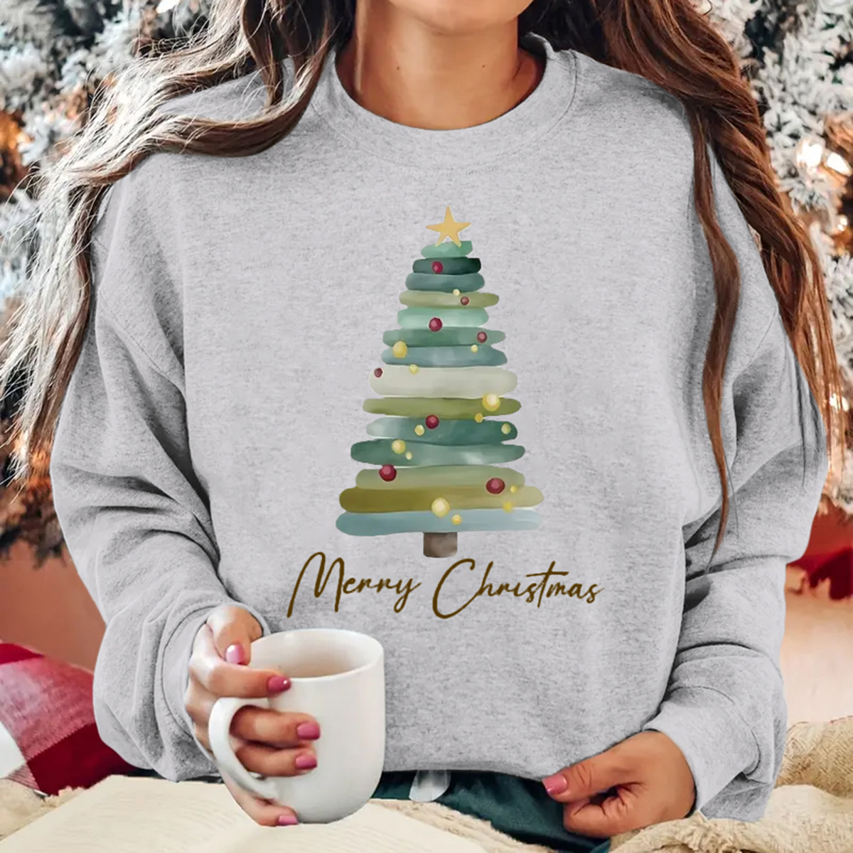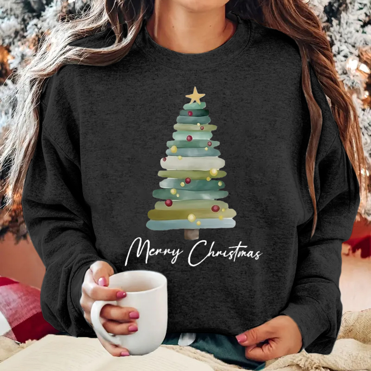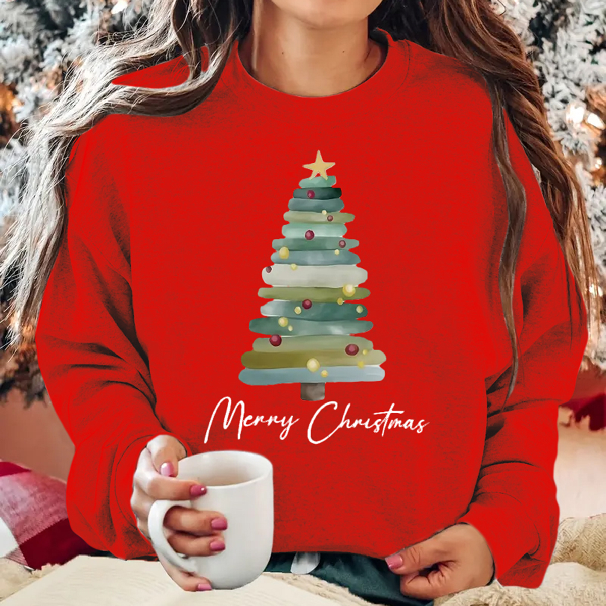Cozy Christmas Tree Print Pullover Sweatshirt - Women's Casual Long Sleeve Crew Neck Fashion Sweatshirt for Fall & Winter - Soft, Warm, and Comfortable Holiday Wear
