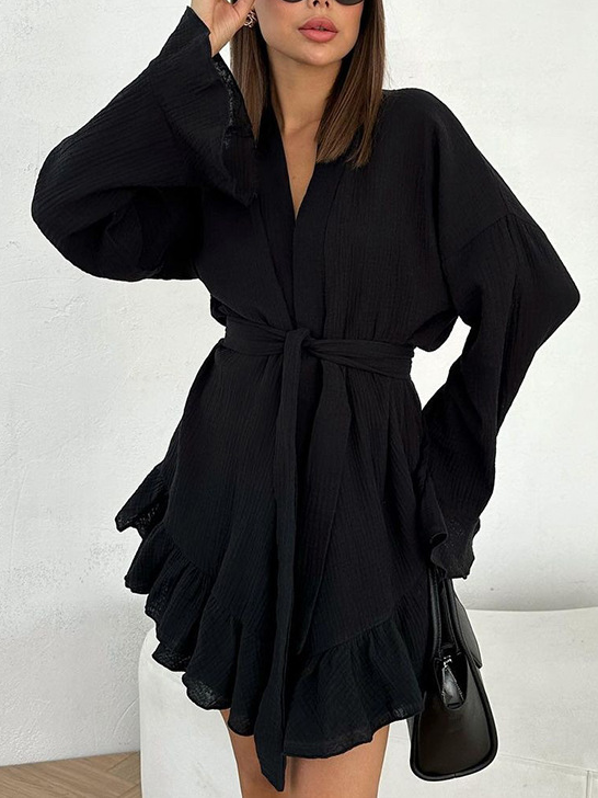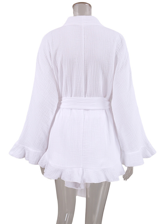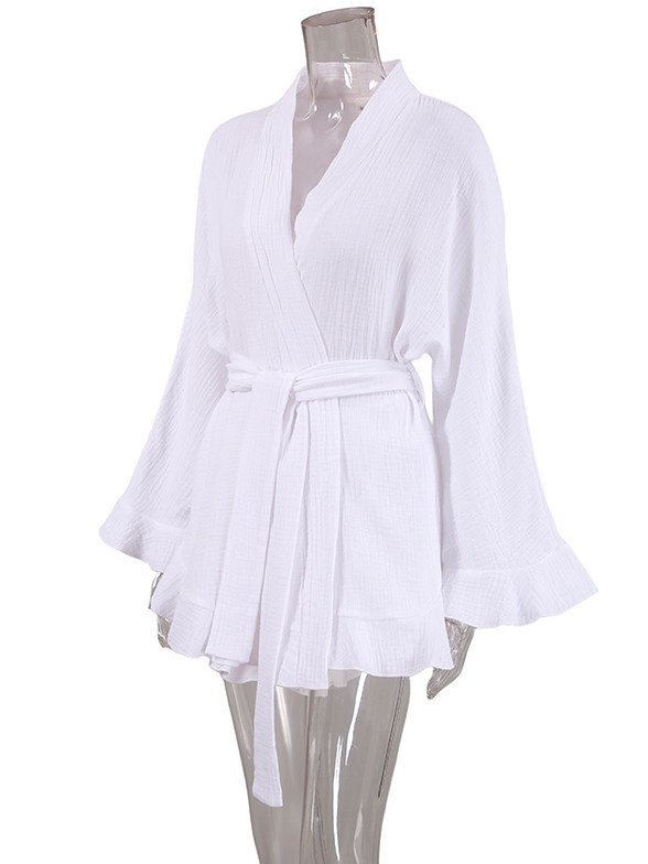 Crepe cotton ruffle robe shorts set loungewear