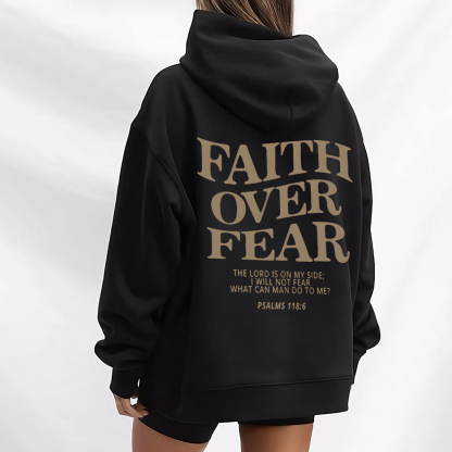 FAITH OVER FEAR PATTERN PRINTED HOODIE