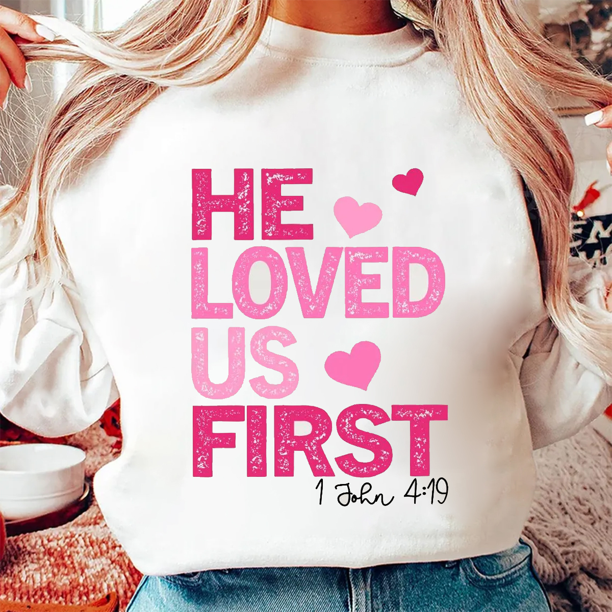 He Loved Us First Printed Round Neck Long Sleeve Sweatshirts