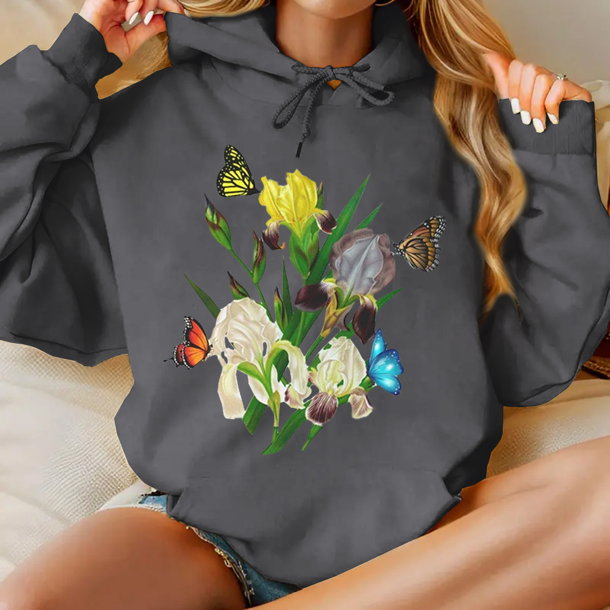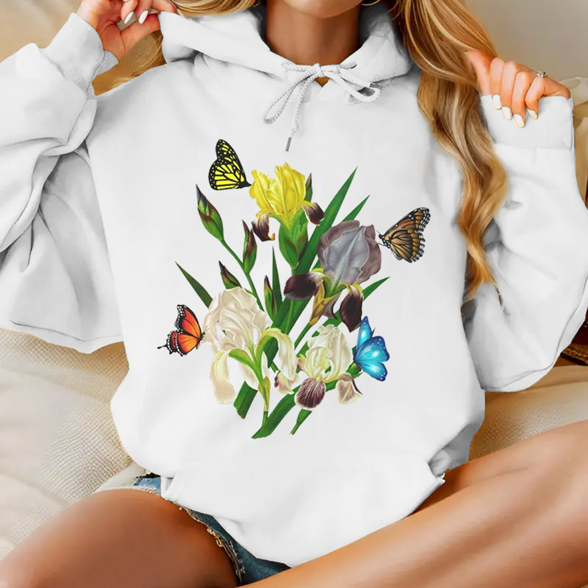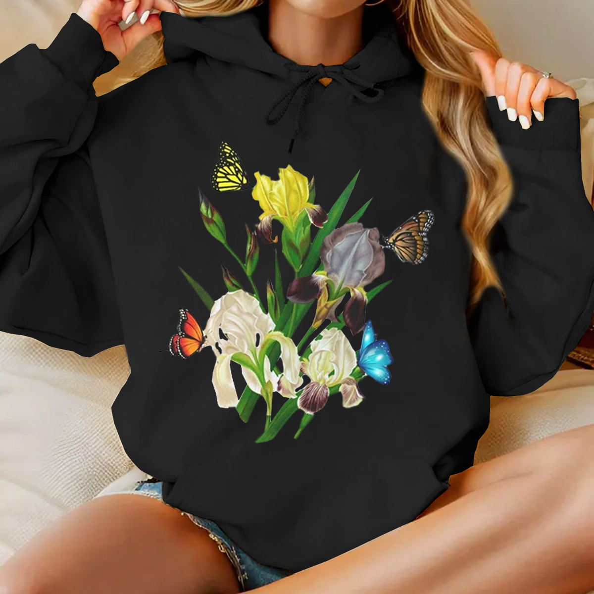 Iris Flower Sweatshirt, Butterflies and Iris Sweatshirt, Beautiful Iris Sweatshirt, Iris Floral Sweatshirt, Sweatshirt for Women, Iris Flower Gift, Floral Sweatshirt