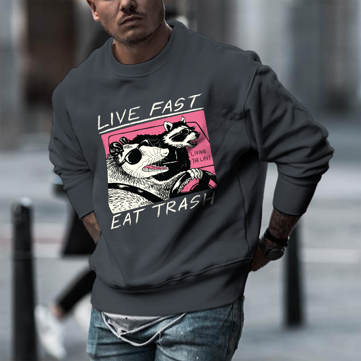 Live Fast Eat Trash Mens Sweatshirts