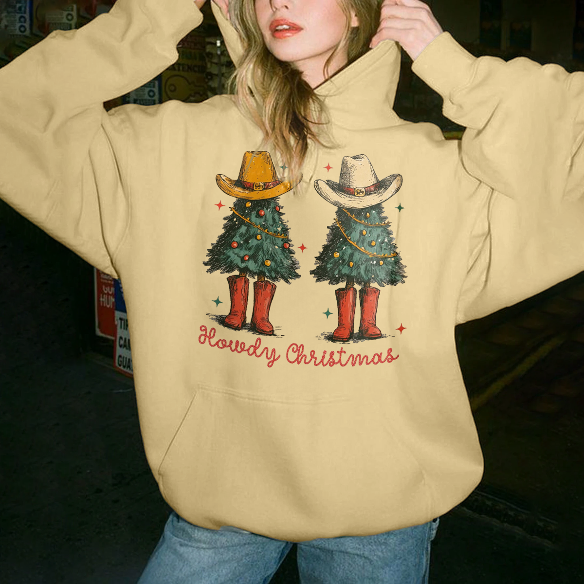 Merry Christmas, Christmas tree with straw hat Women's hoodie