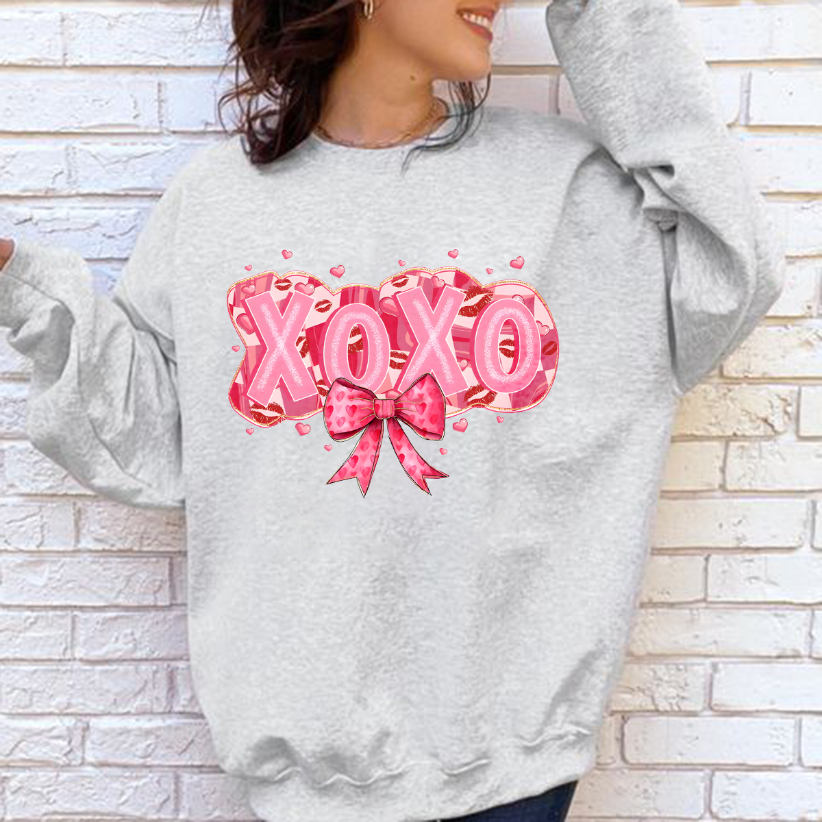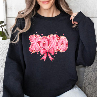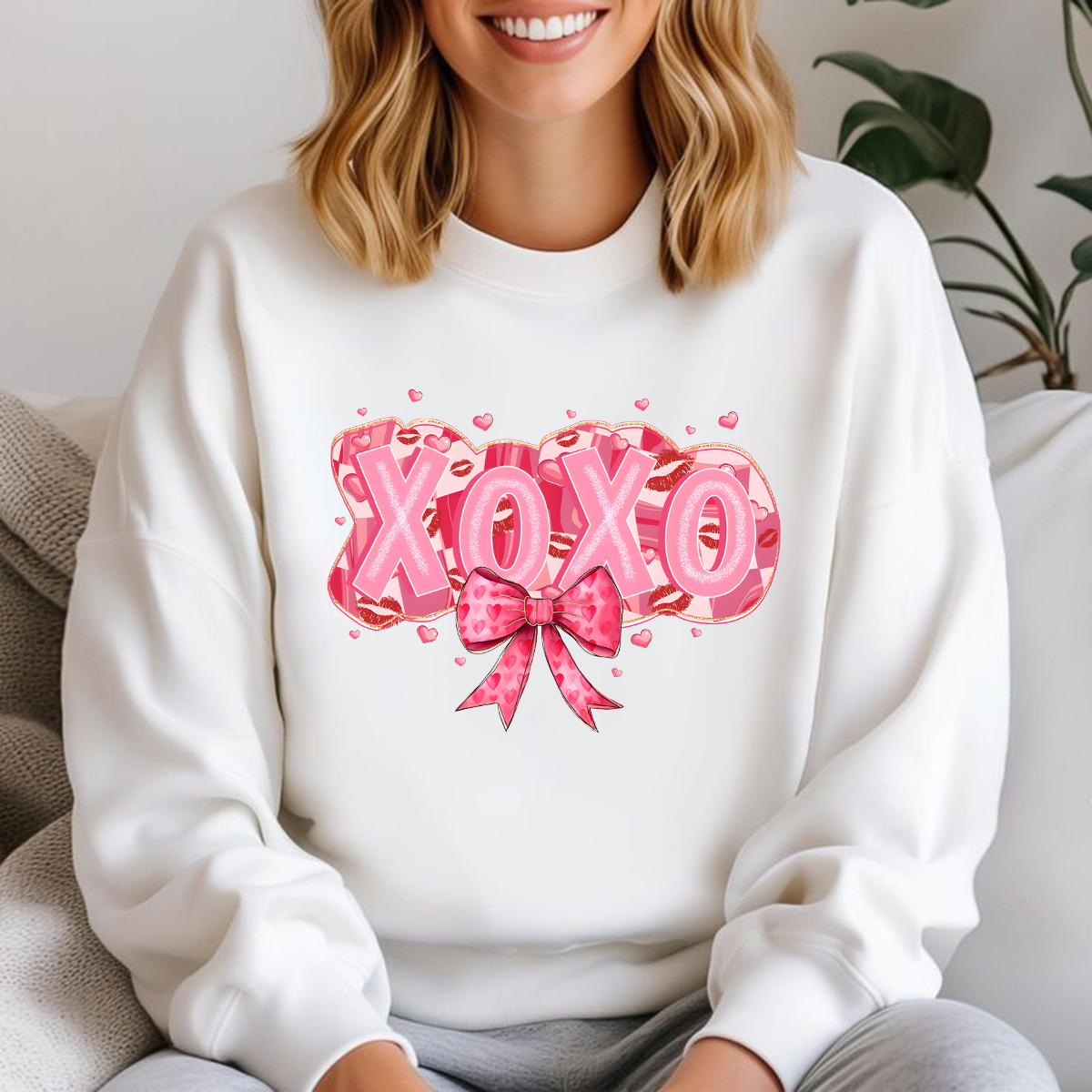 Pink "Xoxo" Bow-Tie Crewneck Sweatshirt