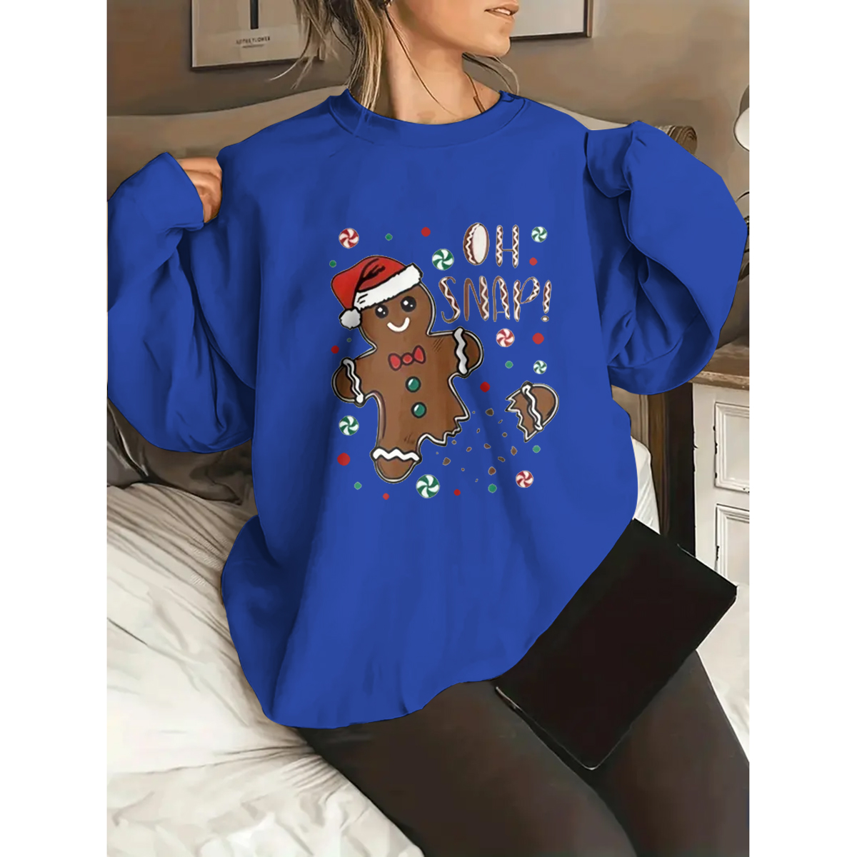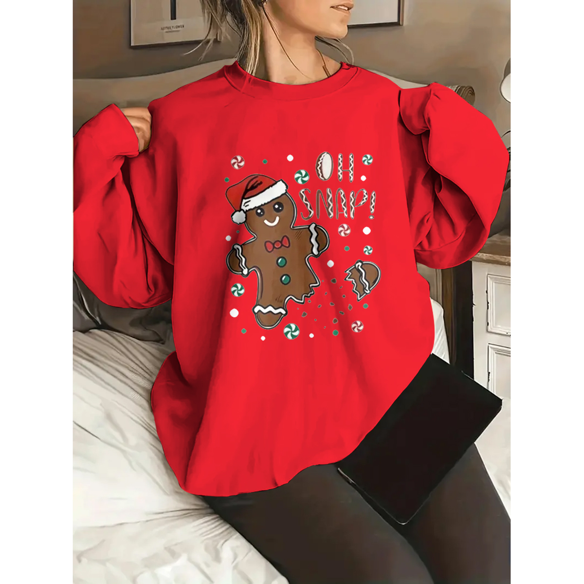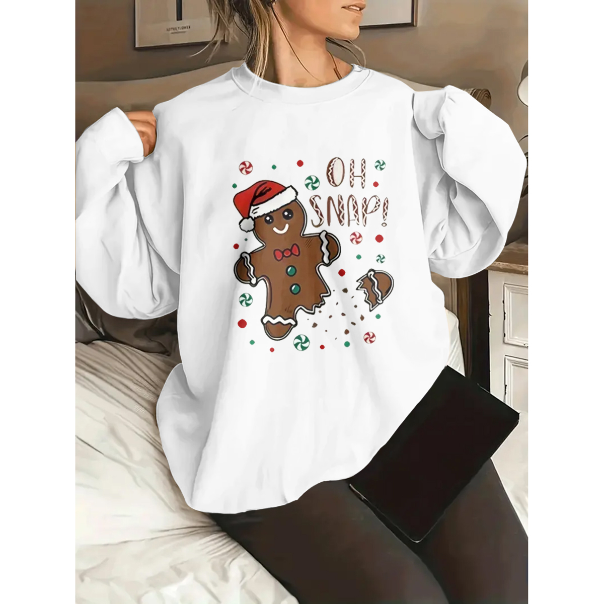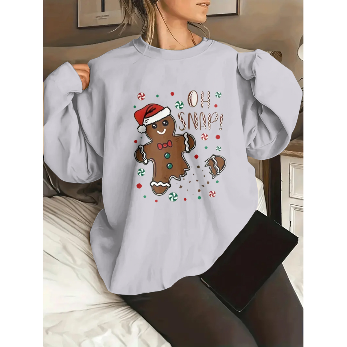 Plus Size Women's Cozy Christmas Graphic Sweatshirt - Long Sleeve, Round Neck, Casual, Letter Print, Soft and Warm Fleece Lining - Perfect for Holiday Parties and Daily Wear