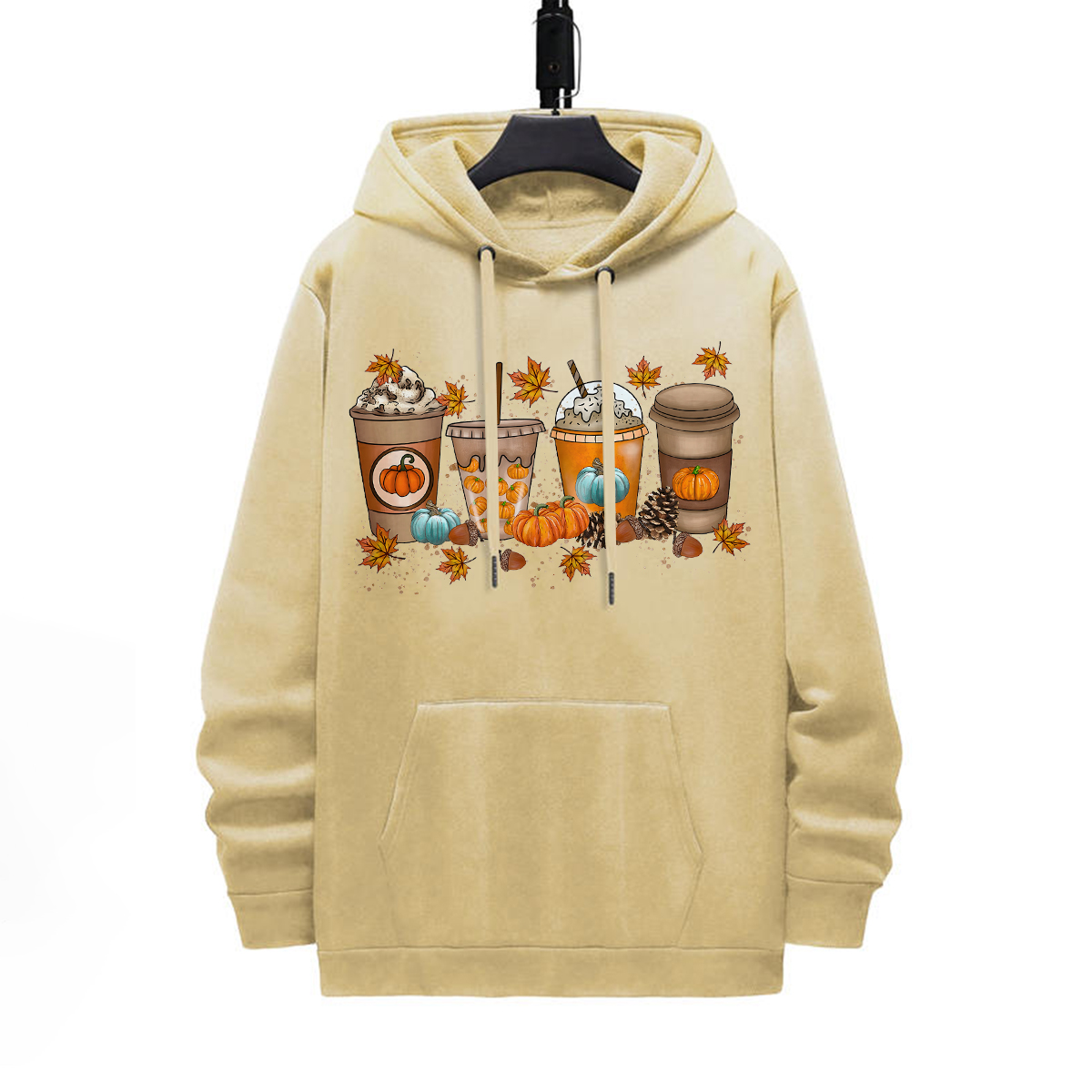 PUMPKIN COFFEE DESIGNED PATTERN PRINTED HOODIE