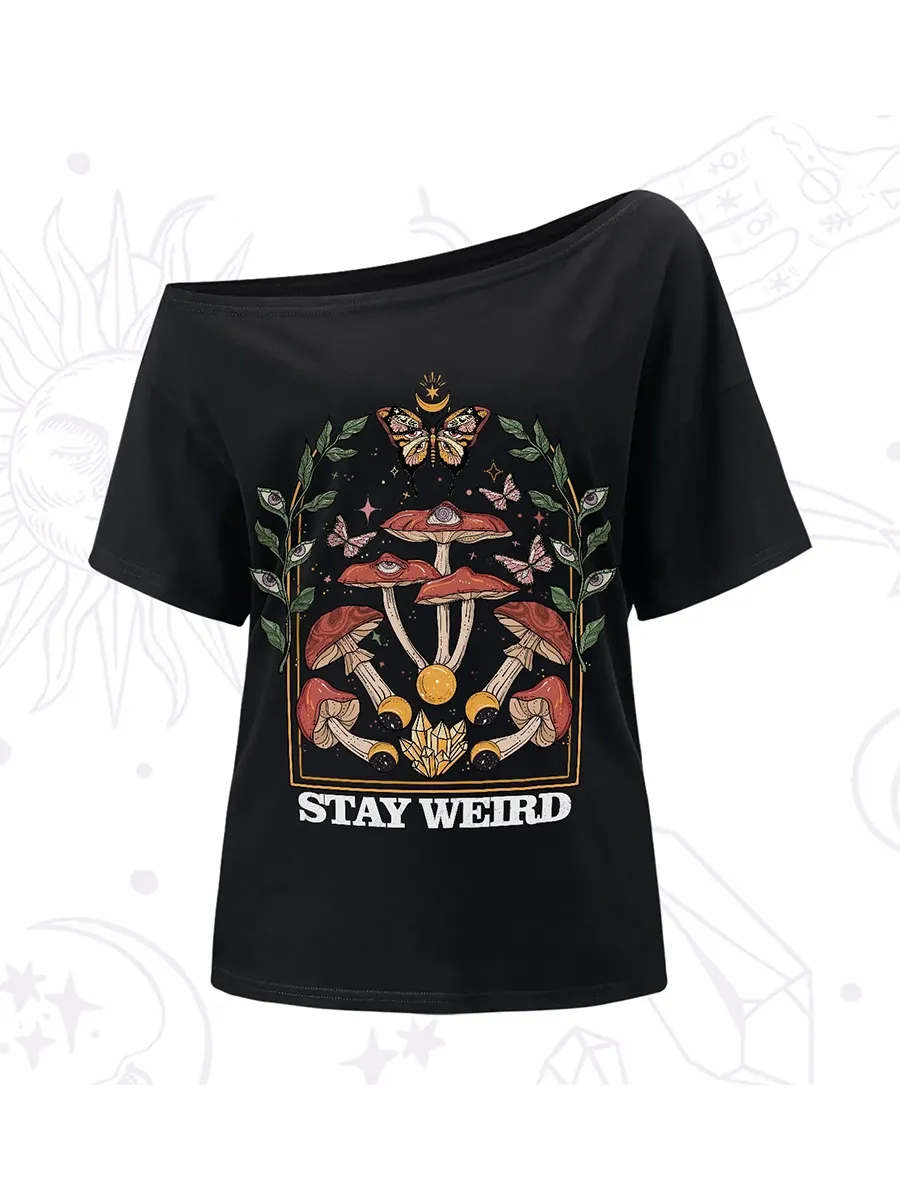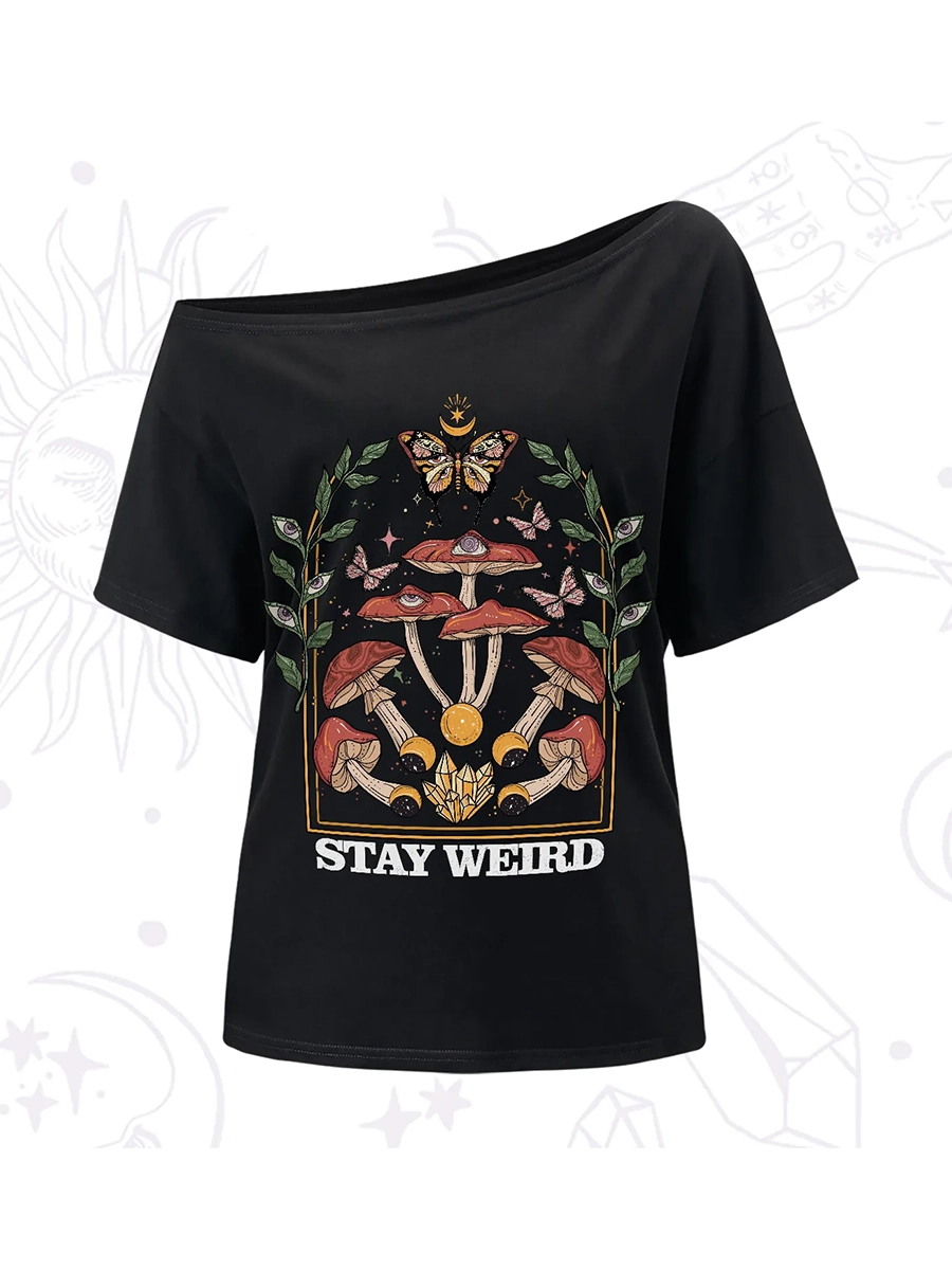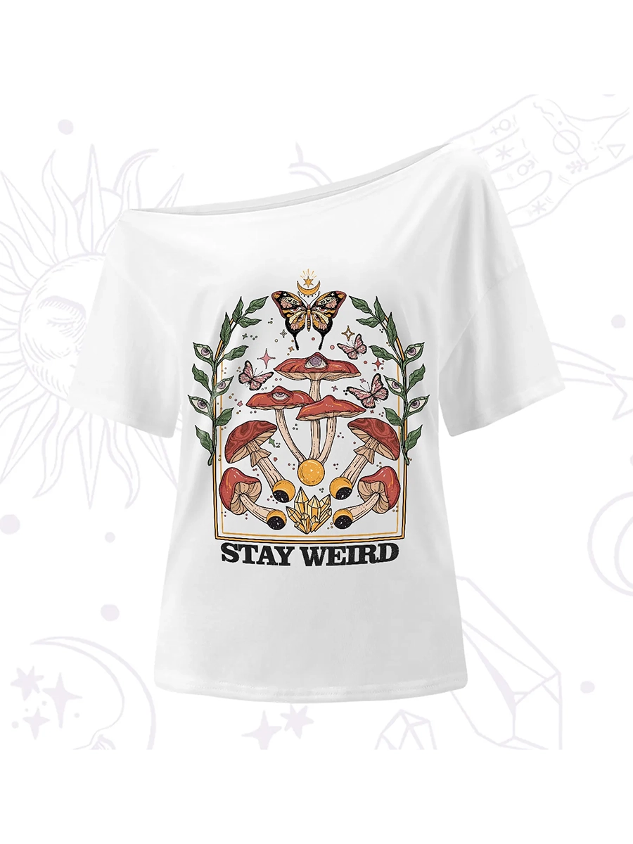 Purplehecate Stay Weird One-Shoulder T-Shirt