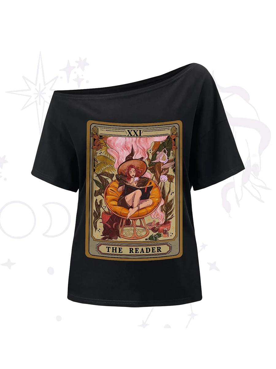 Purplehecate The Reader Tarot Card One-Shoulder T-Shirt