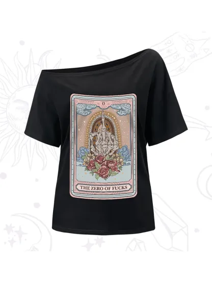 Purplehecate The Zero Of Fucks Tarot One-Shoulder T-Shirt