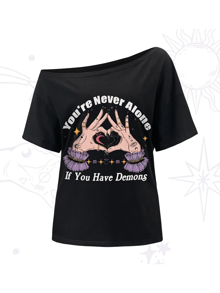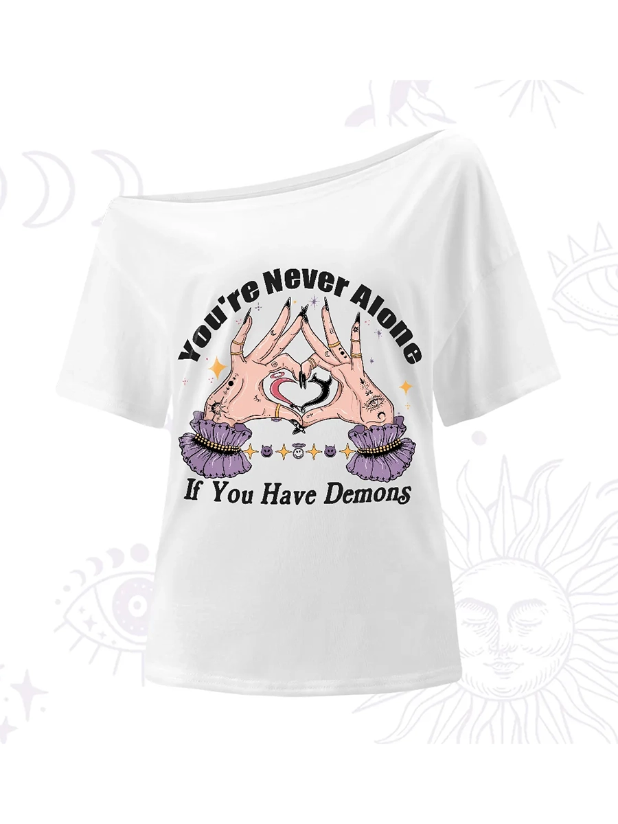 Purplehecate You're Never Alone If You Have Demons One-Shoulder T-Shirt