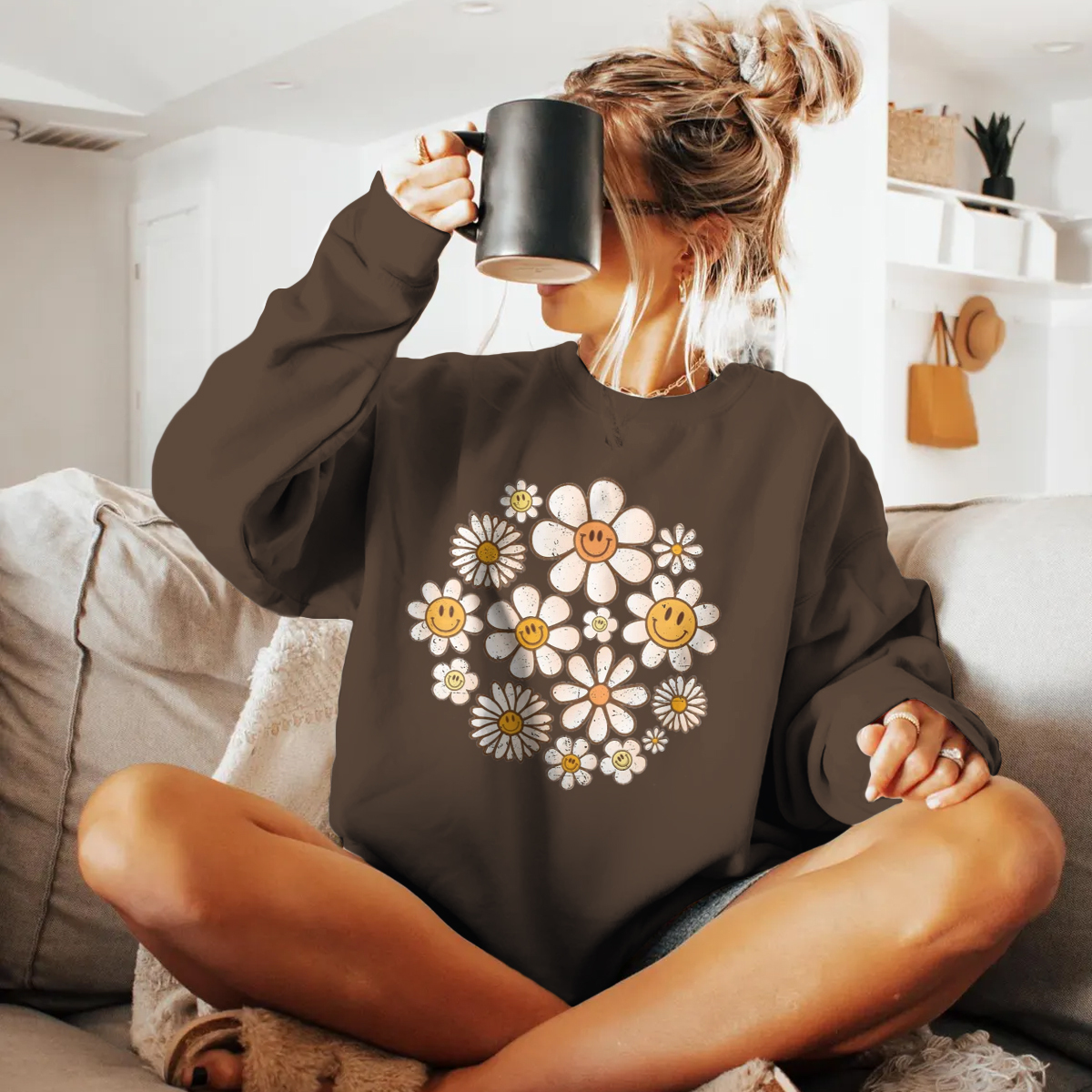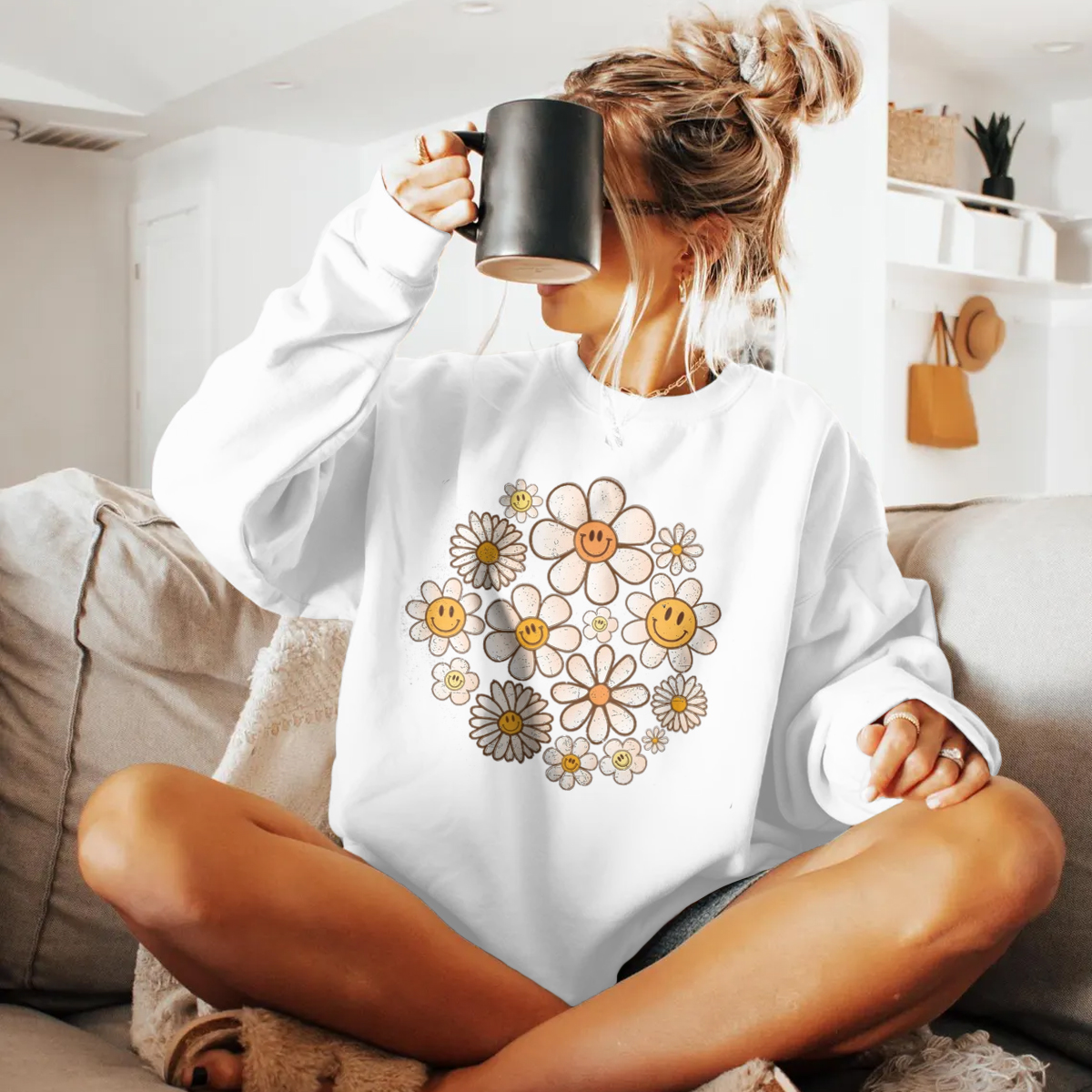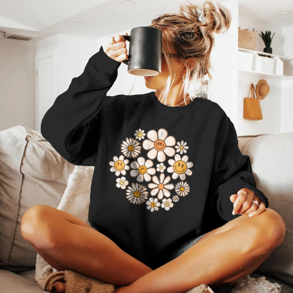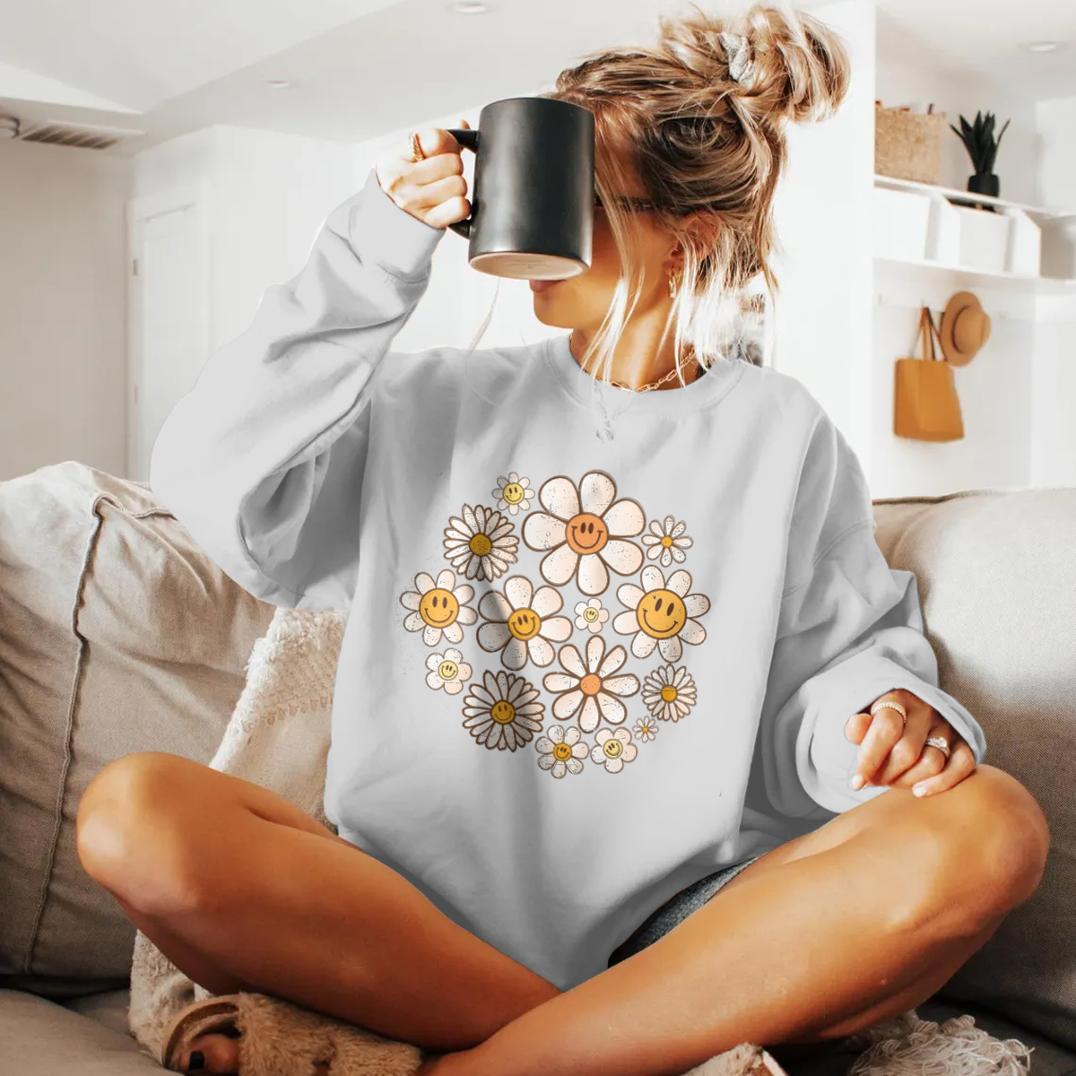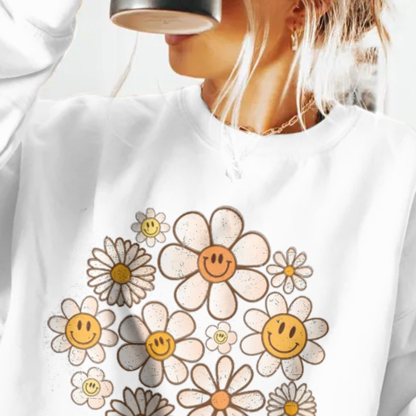 Retro Sweatshirt, Flowers Sweatshirt, Retro Flower Sweatshirt, Retro Daisy Sweatshirt Daisy Flower Sweatshirt Womens, Flower Smile faces Sweatshirt, Smile Floral Sweatshirt