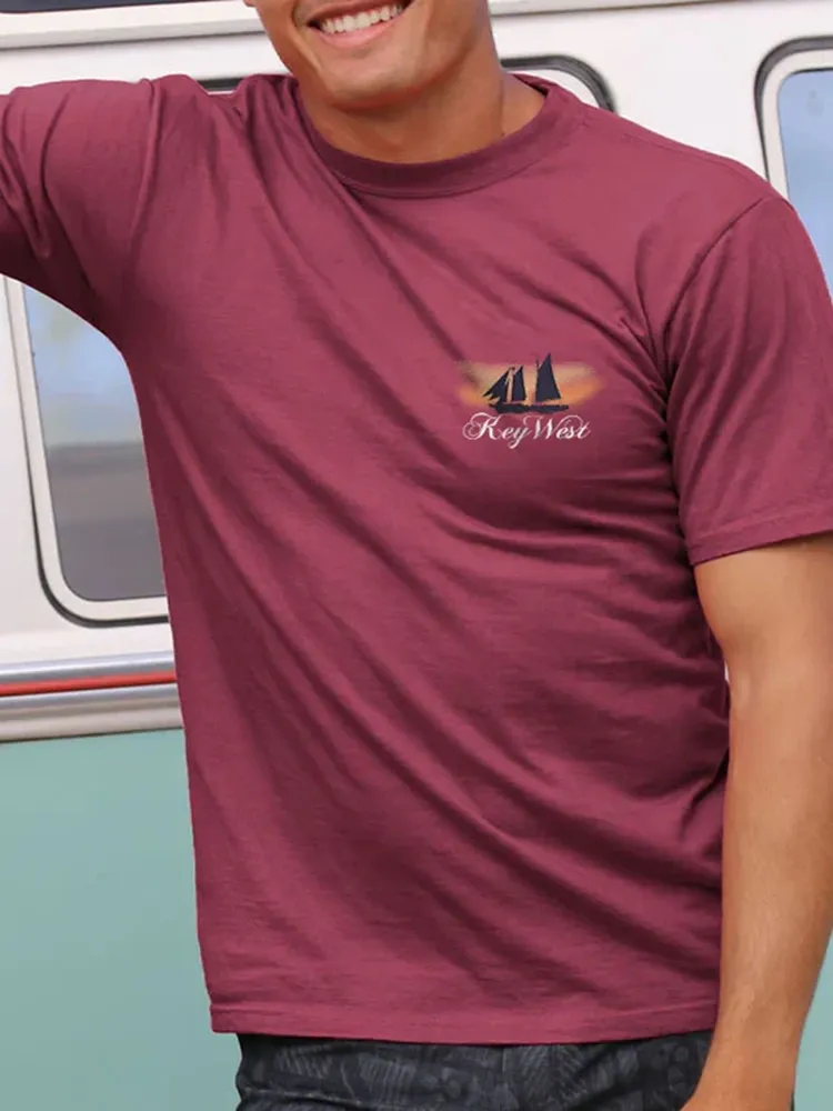 Sails At Sunset - Paradise Red Dyed Short Sleeve Crewneck T-Shirt