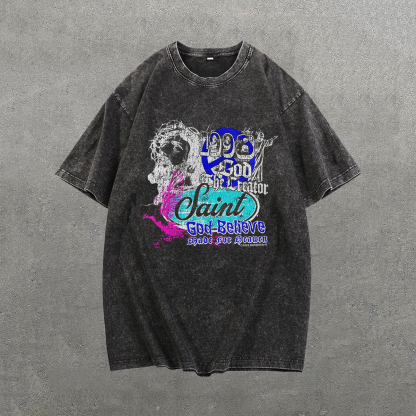 Saint God Believe Made For Beauen Printed Short Sleeved T-Shirt