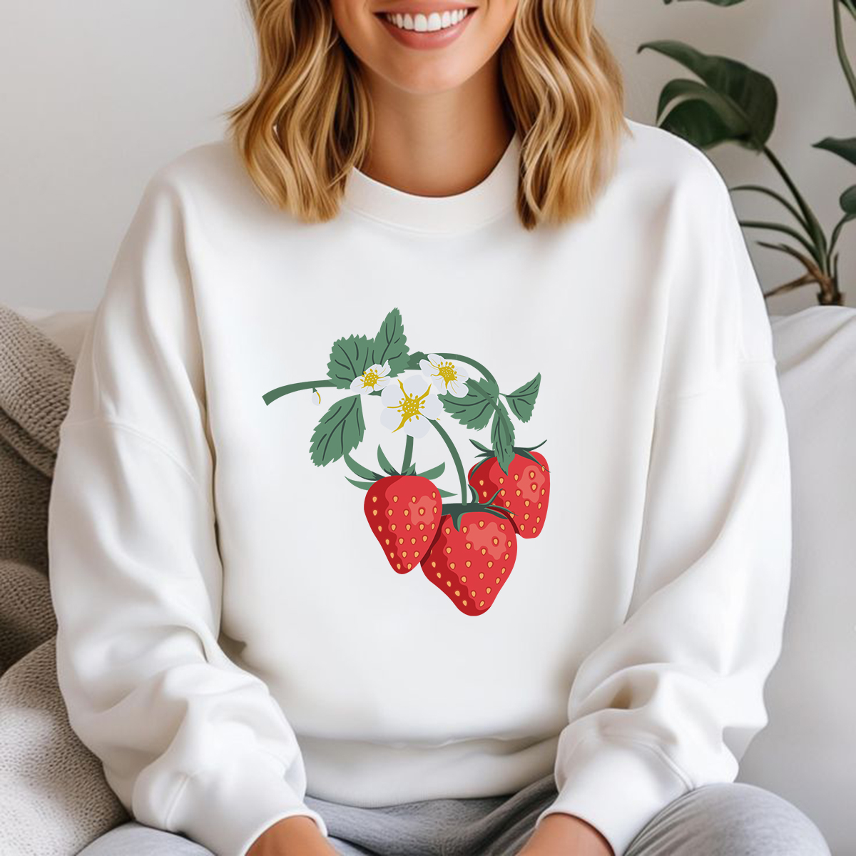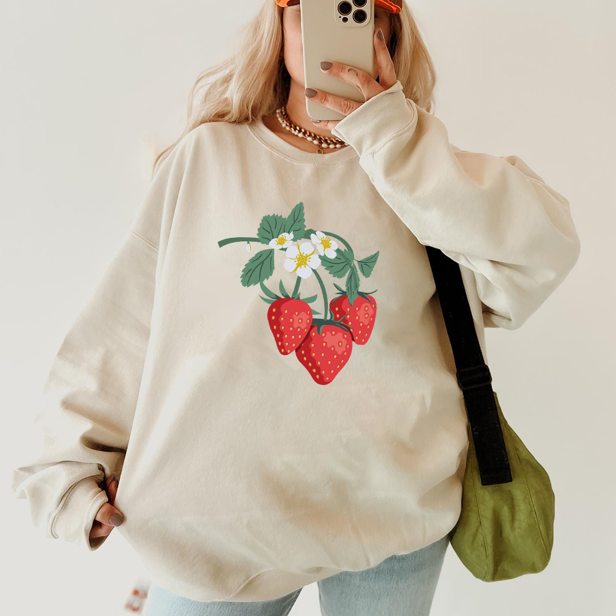 Strawberry Pattern, Cute And Fresh Style, Casual Sportsshirt, Round Neck Sweatshirt.