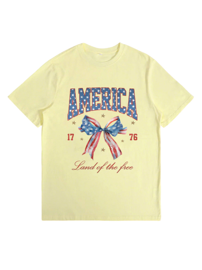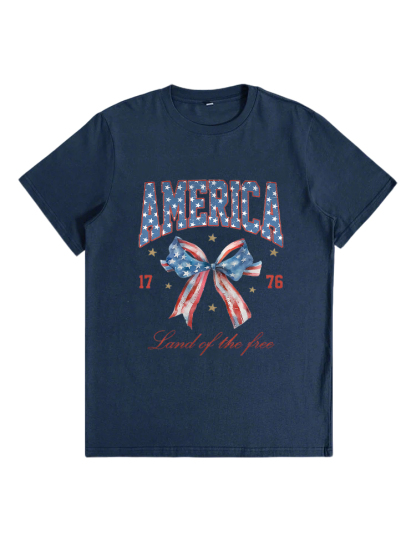 T-Shirt America 1776 Land Of The Pree Round-Neck Short-Sleeved T-Shirt