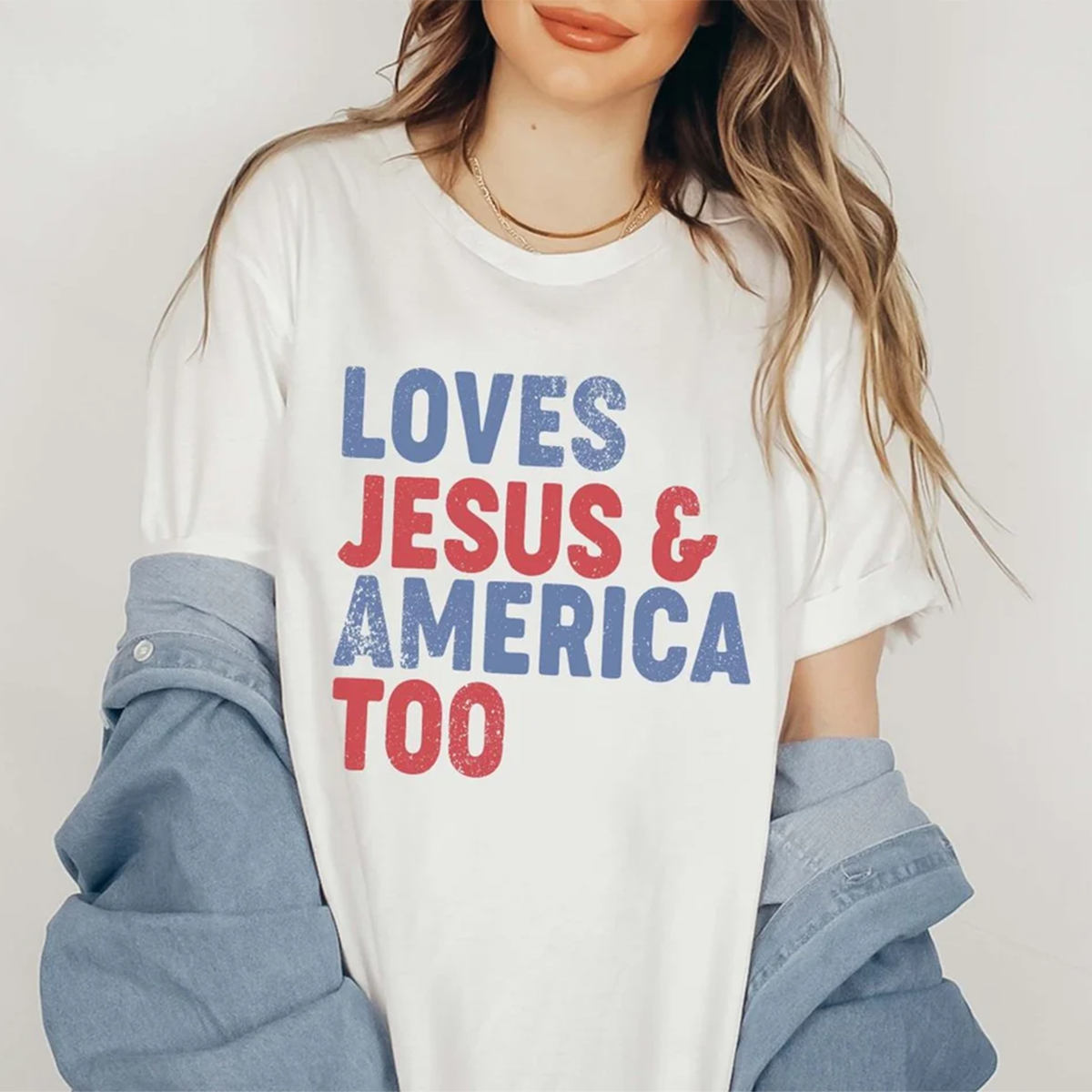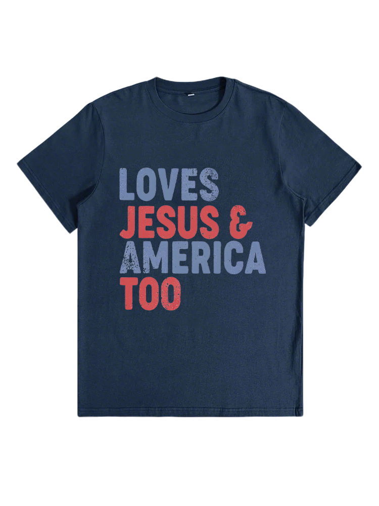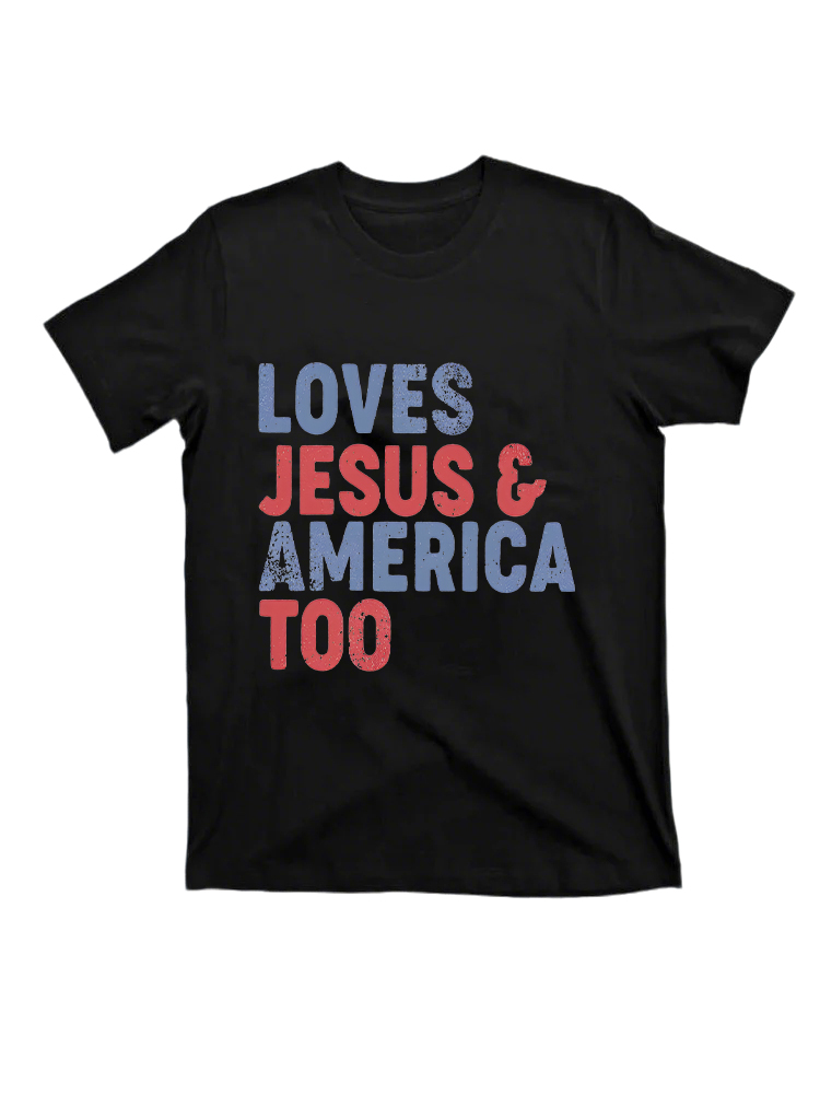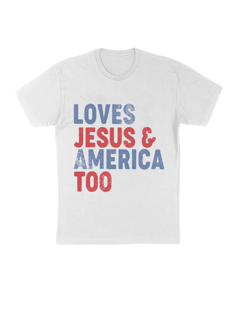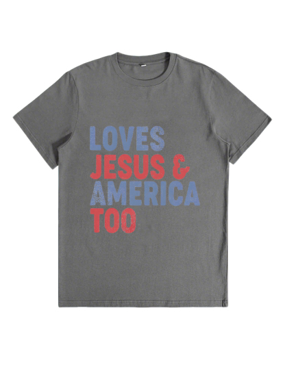 T-Shirt Loves Jesus America Too Round-Neck Short-Sleeved T-Shirt