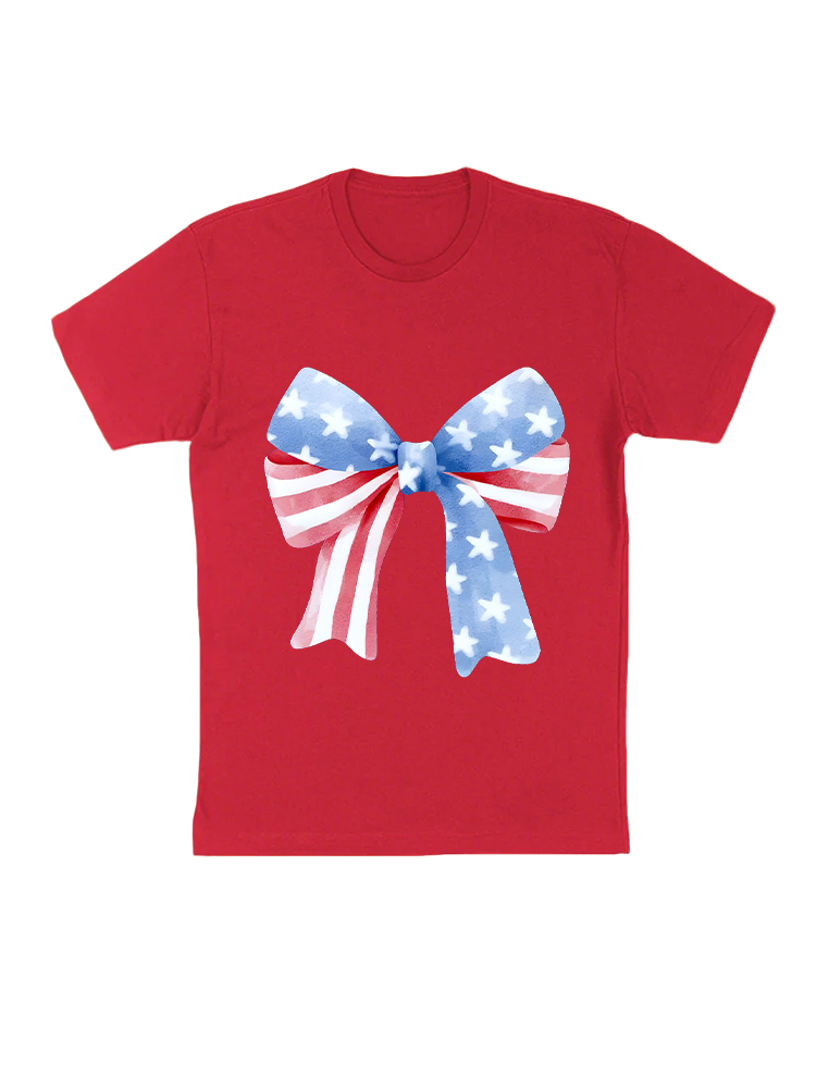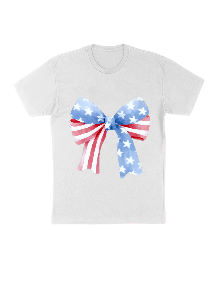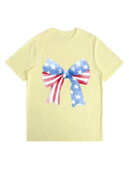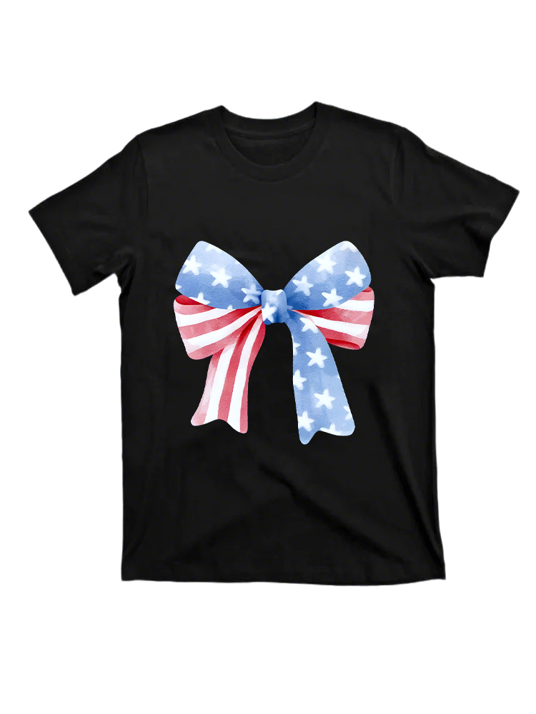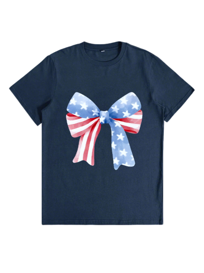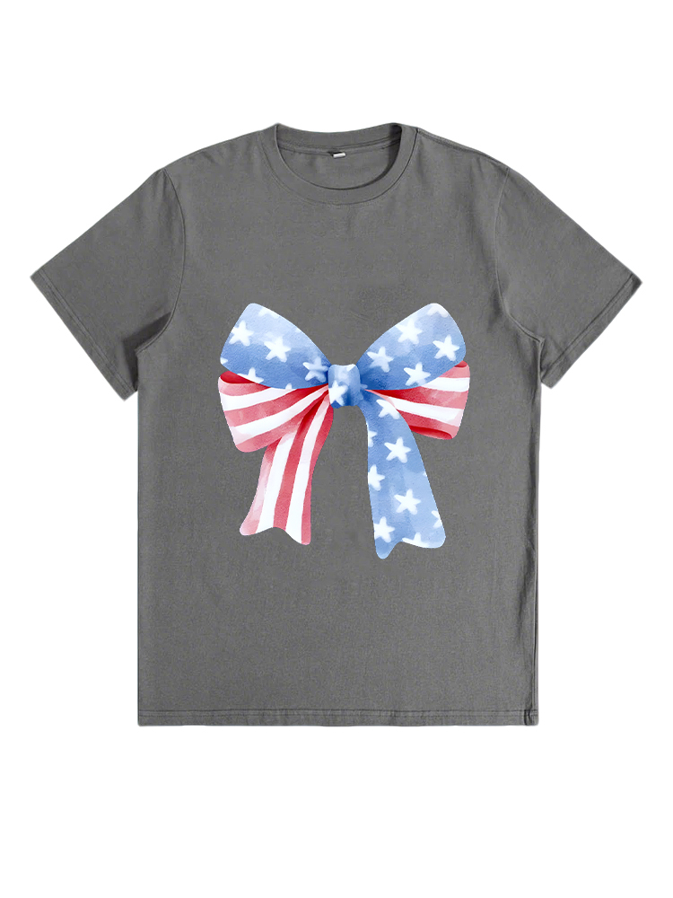 T-Shirt Star-Striped Bow Print Round-Neck Short-Sleeved T-Shirt