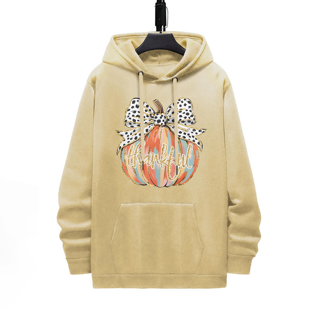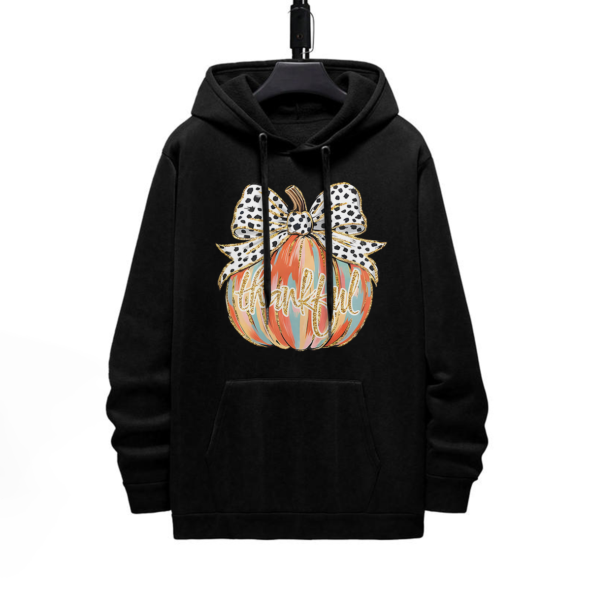 THANKFUL PUMPKIN DESIGNED PATTERN PRINTED HOODIE