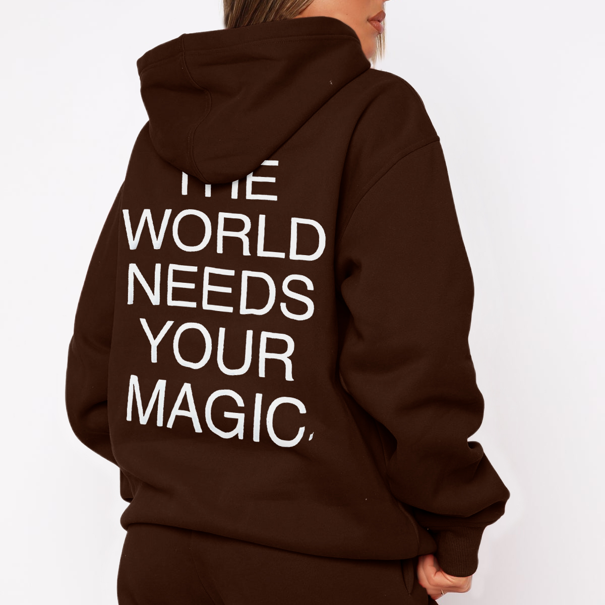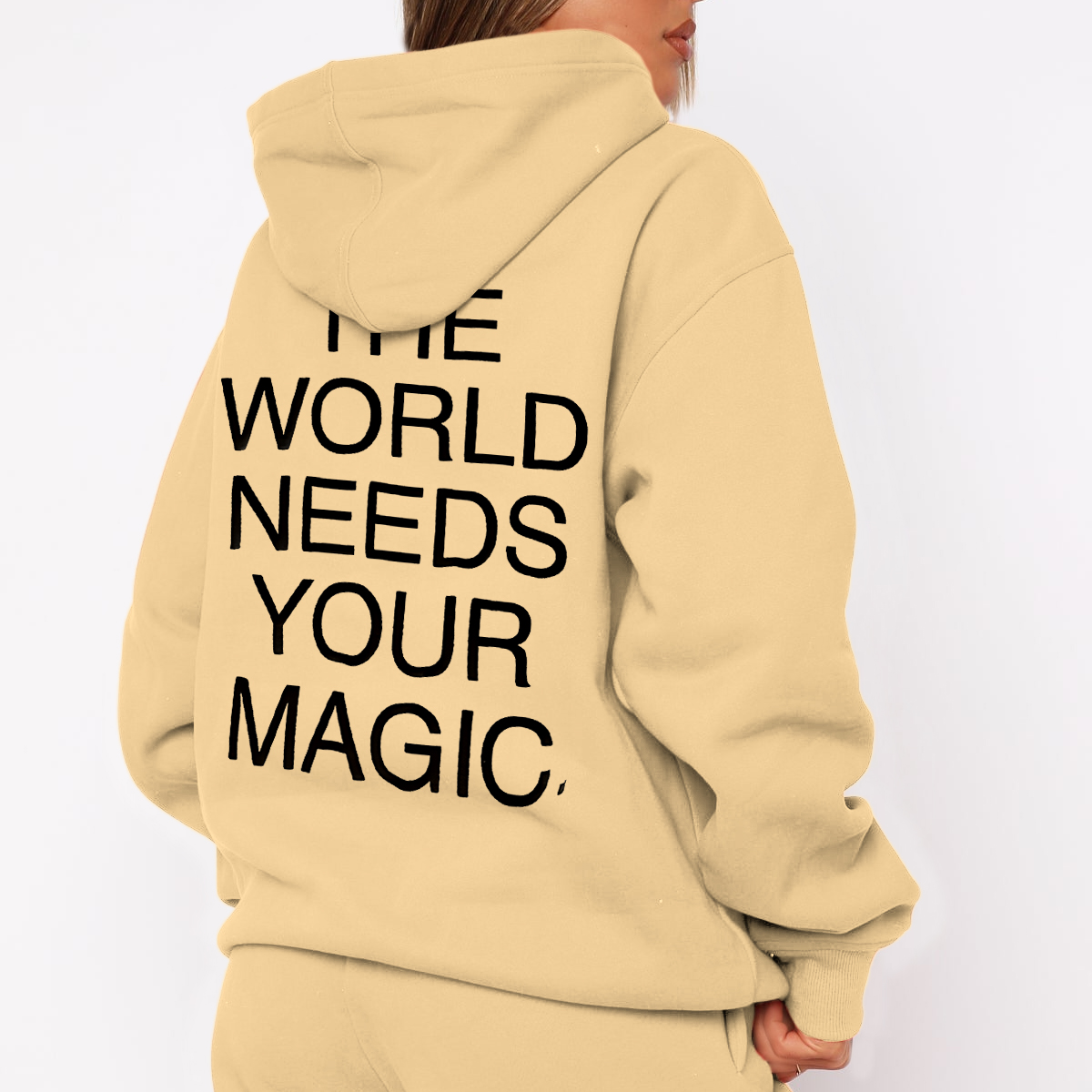 The World Needs Your Magic Oversized Loose Fit Long Sleeve Hooded Pocket Pullover Hoodie
