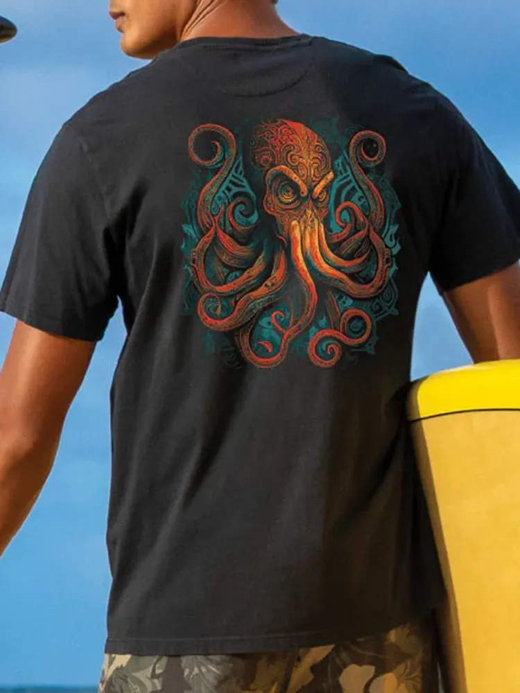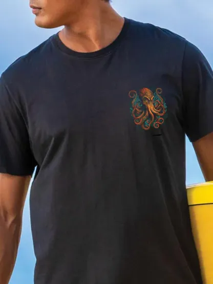 Tribal Octopus - Jet Black Short Sleeve Pima T-Shirt