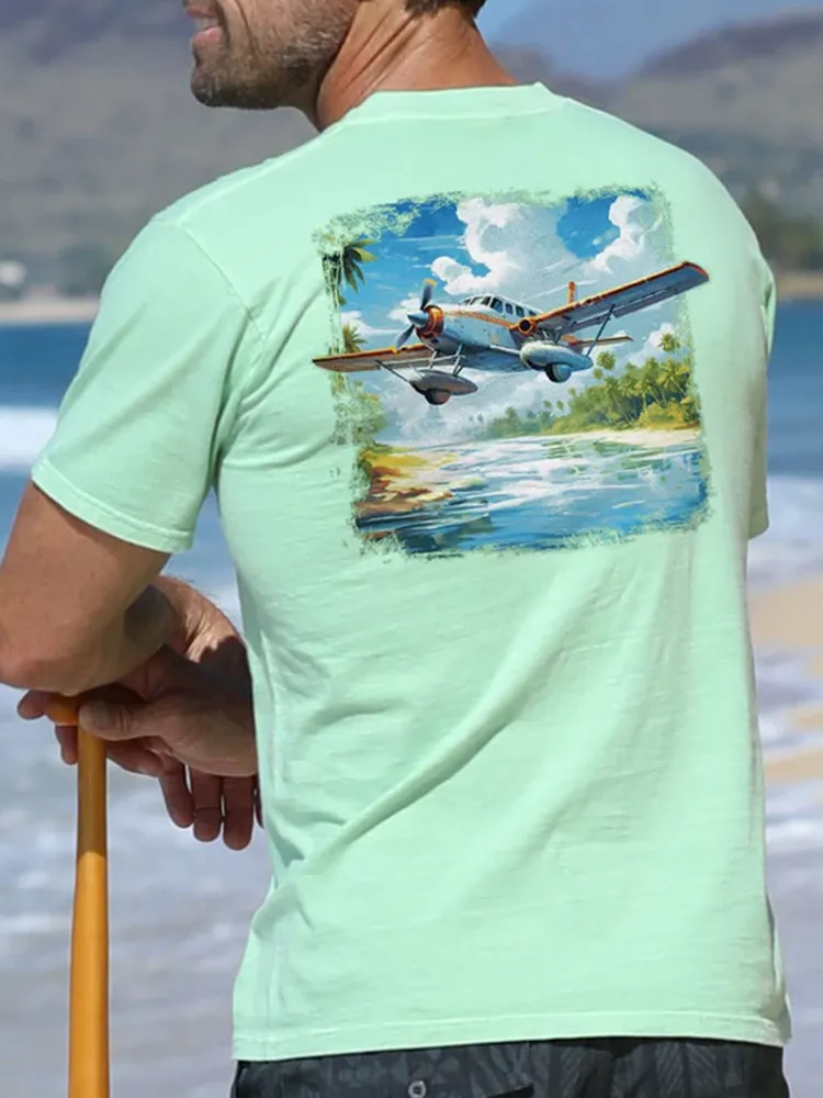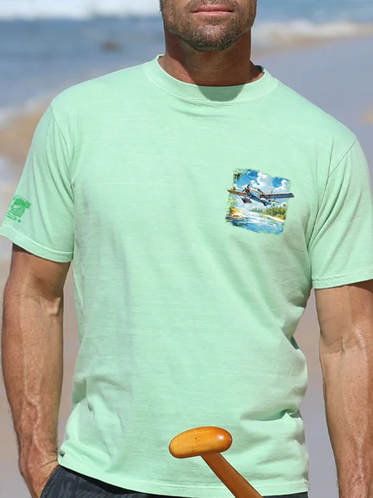 Tropical Seaplane - Key Lime Dyed Short Sleeve Crewneck T-Shirt