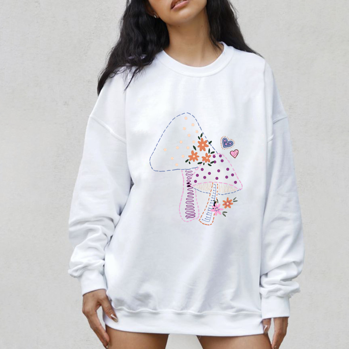 Please note that these sweatshirts are unisex size meaning they are not women's fitted shirts. If you're going for a more fitted look we suggest to go with your normal size. If you are going for an oversized look we suggest sizing up 1 or 2 sizes depending on how oversized you like it. If you are having problems choosing a size, lay your favorite shirt at home flat and measure armpit to armpit to compare to the size chart in the photos. Feel free to message us if you have any questions about sizing.