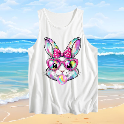 Vest Easter Bunny Wearing Heart Glasses Blowing Bubbles Women's Crew Neck Print