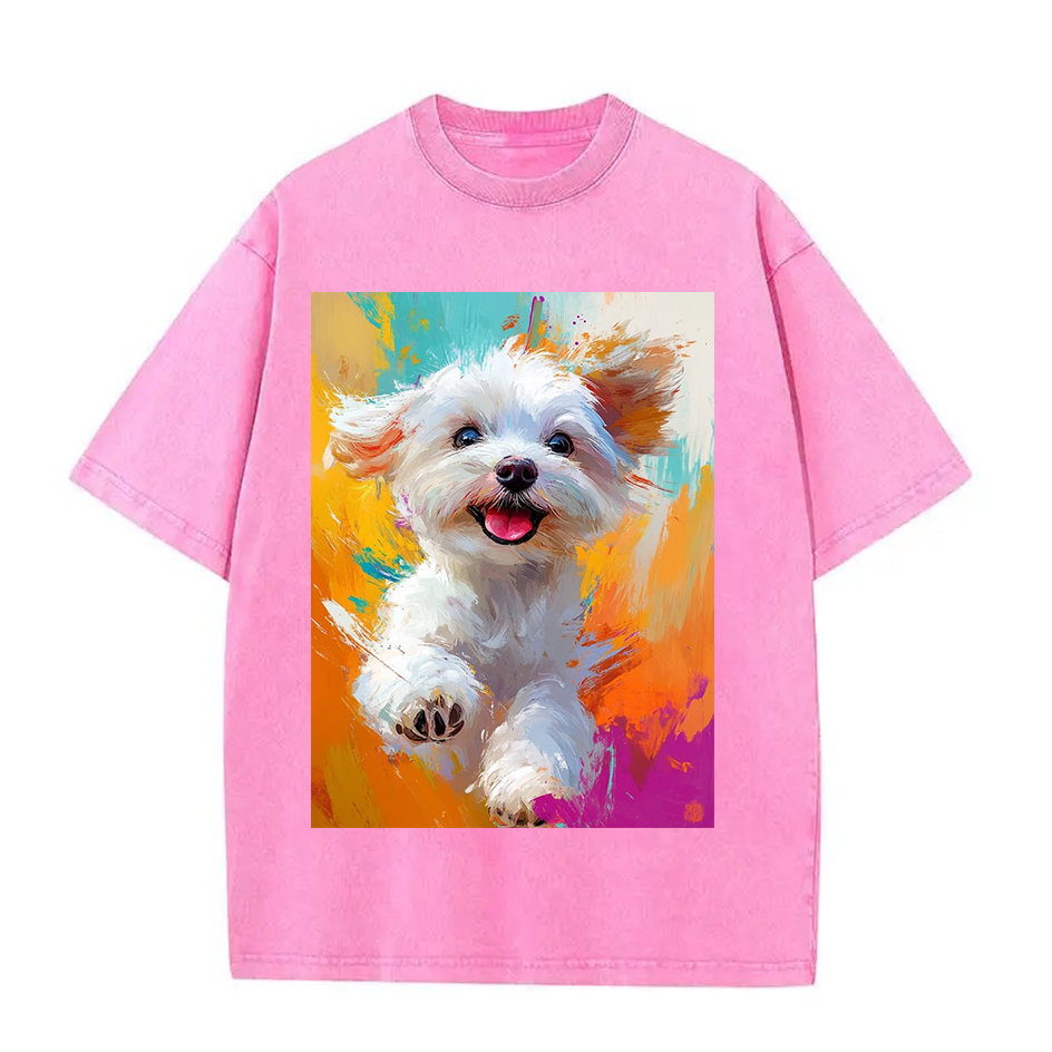 Women'S Cartoon Color Dog Casual Pattern T-Shirt