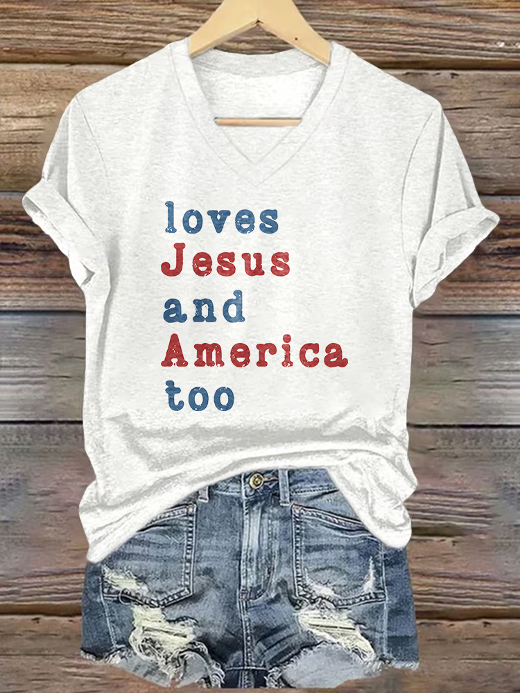 Women'S Loves Jesus Ang America Too T-Shirt