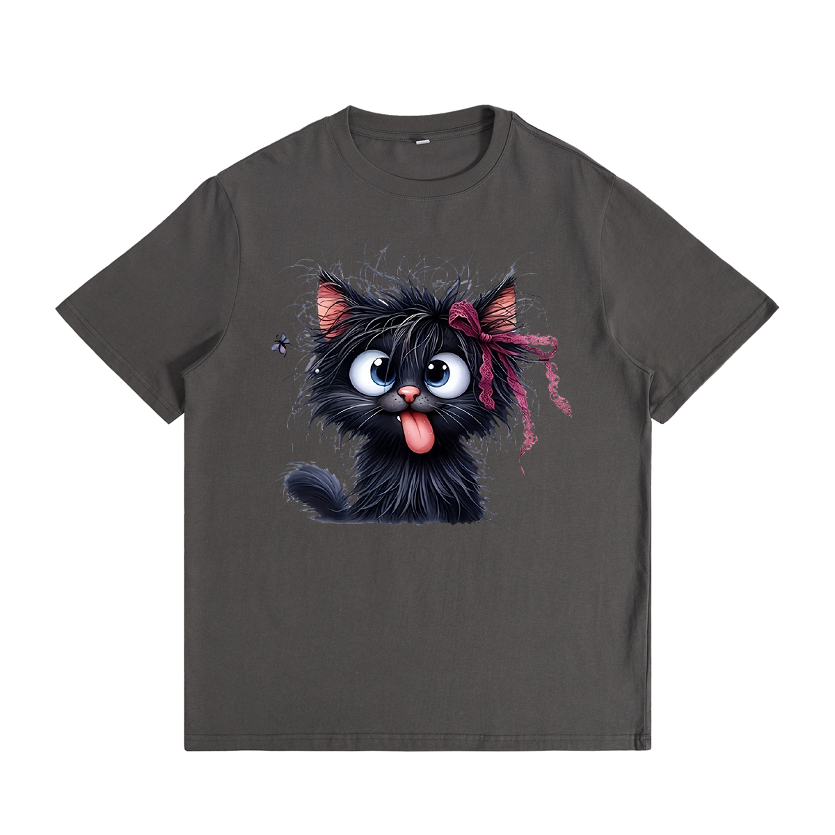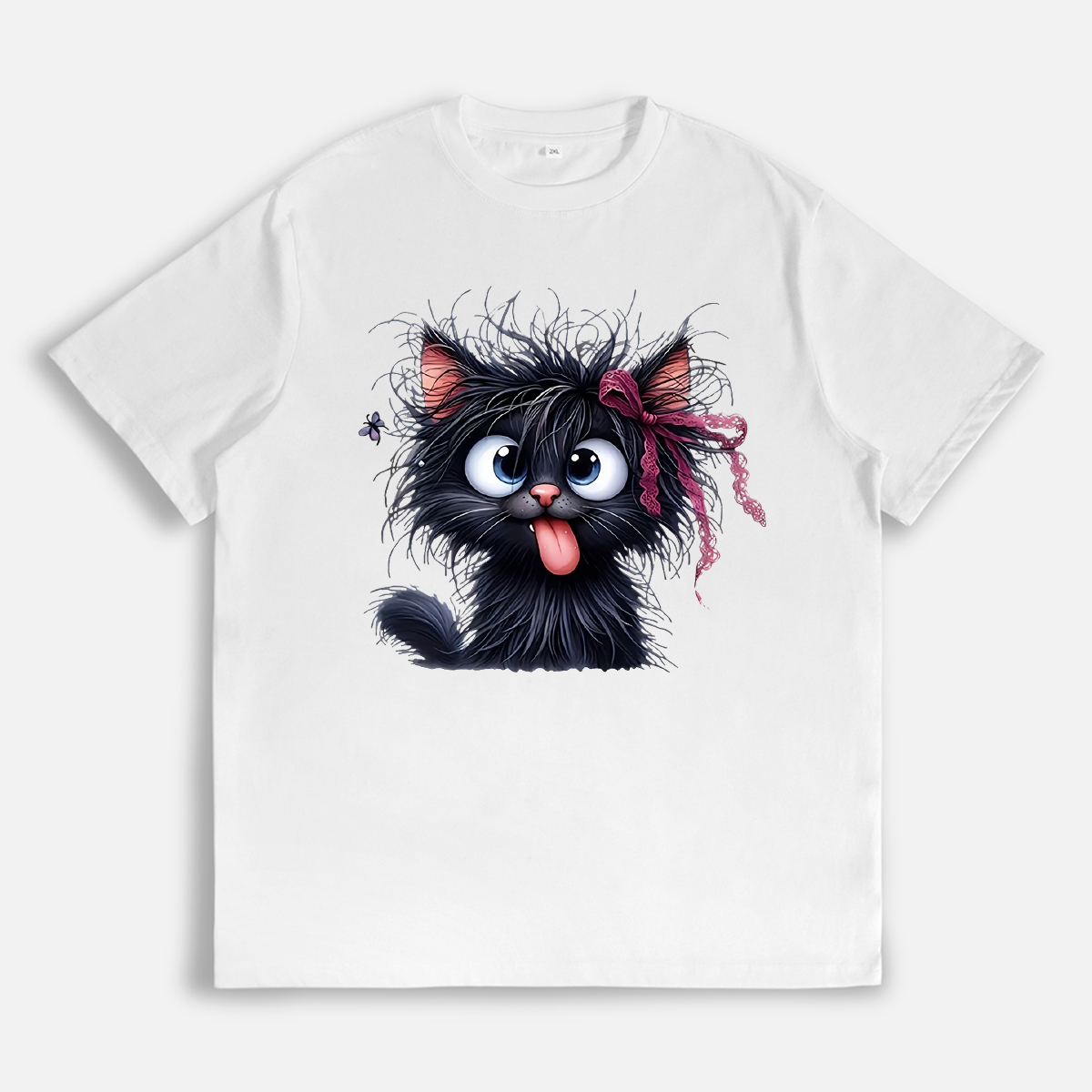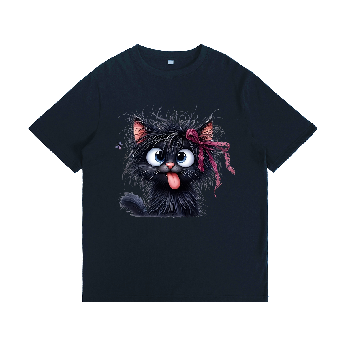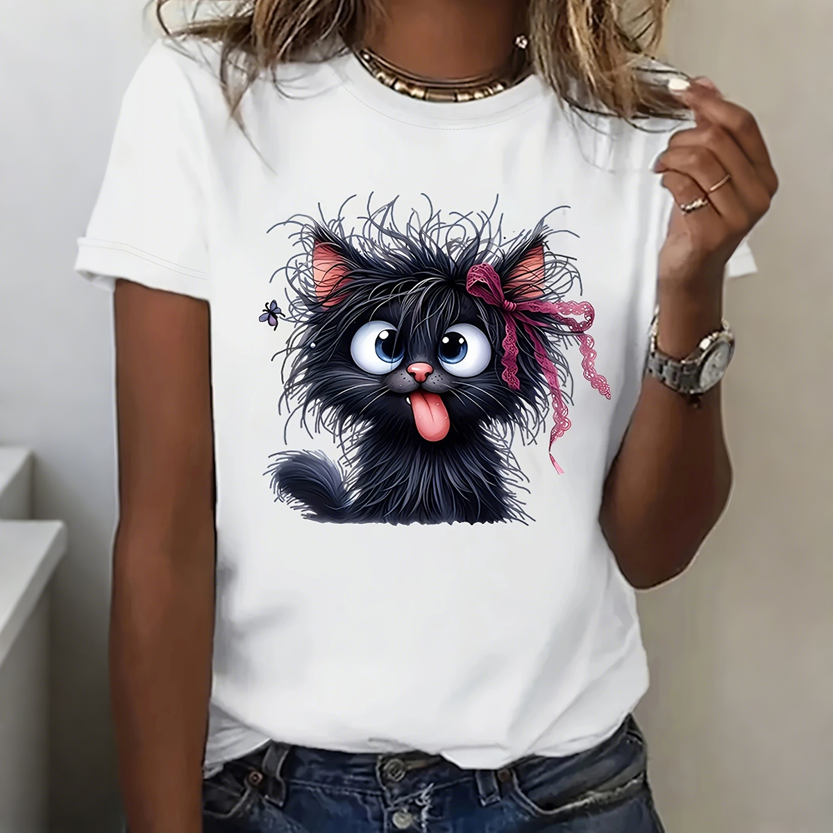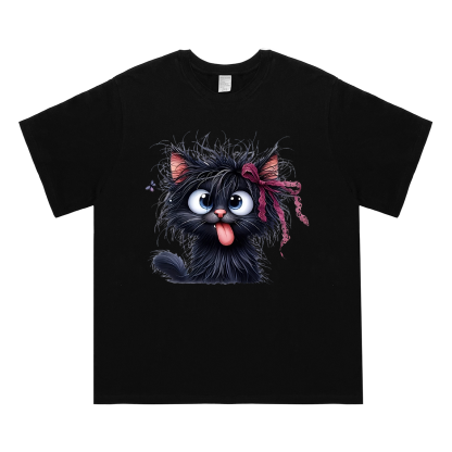 Women's Pink Cartoon Cat With Bow T-Shirt