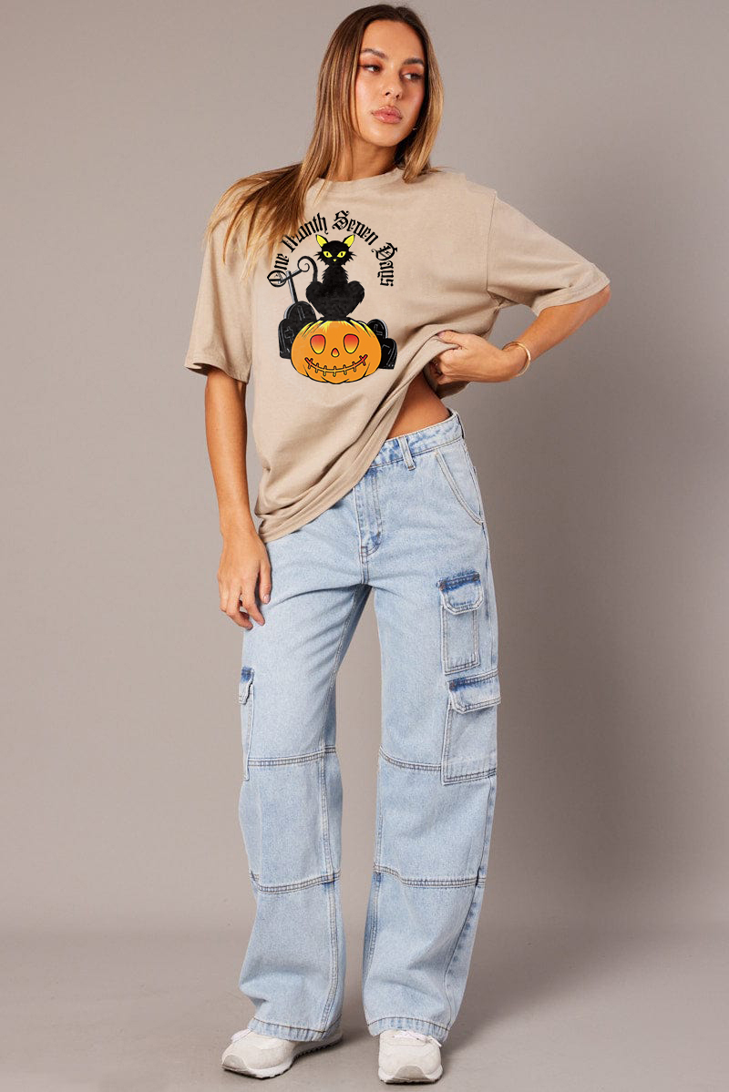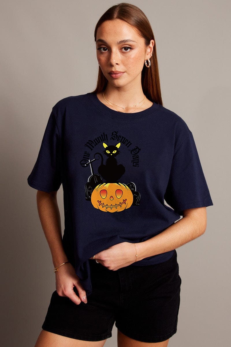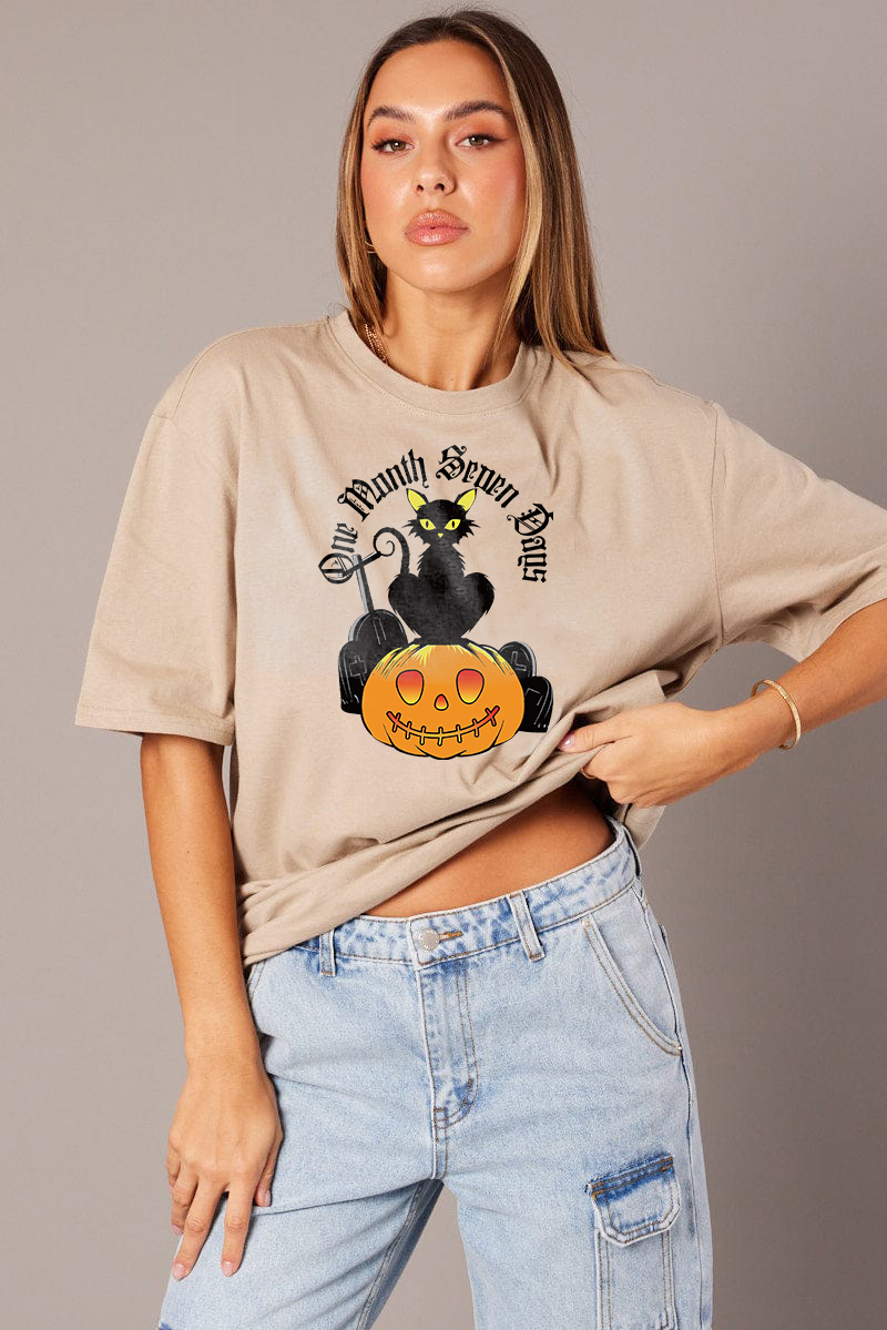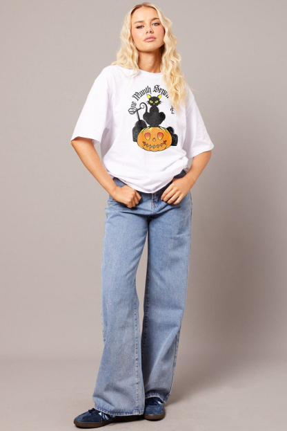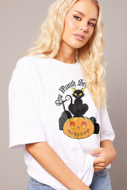 Women's Artistic Pumpkin Letter Combination Printed T-shirt